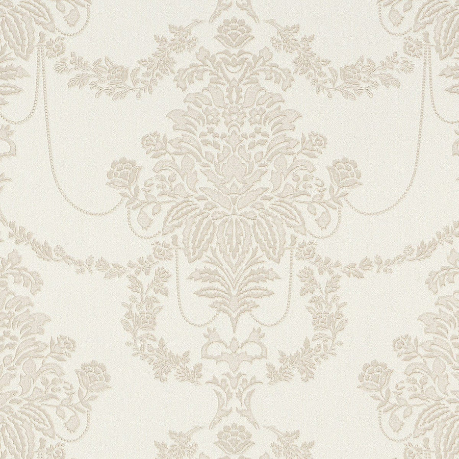 Tapetes ar filigrānu ziedu rakstu kremkrāsā un perlamutra efektu, 3731136