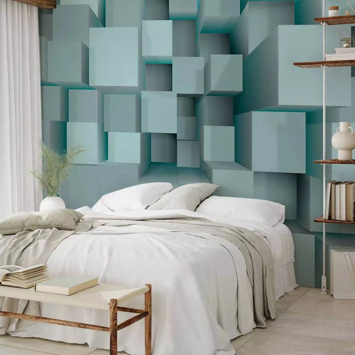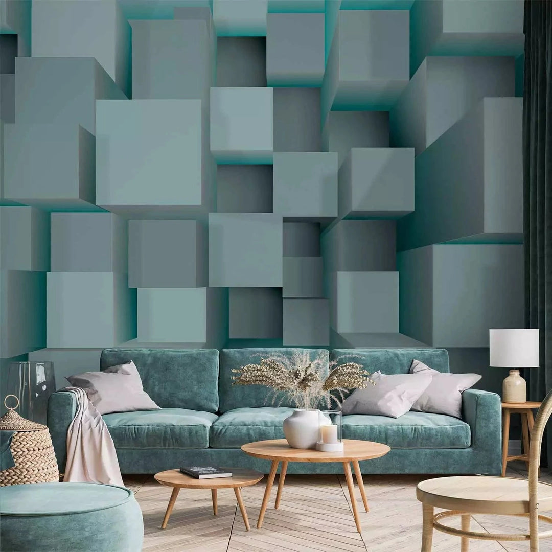 3D fototapetes - zilas ģeometriskas figūras ar ilūzijas efektu, 97063