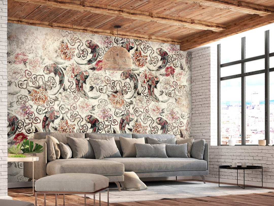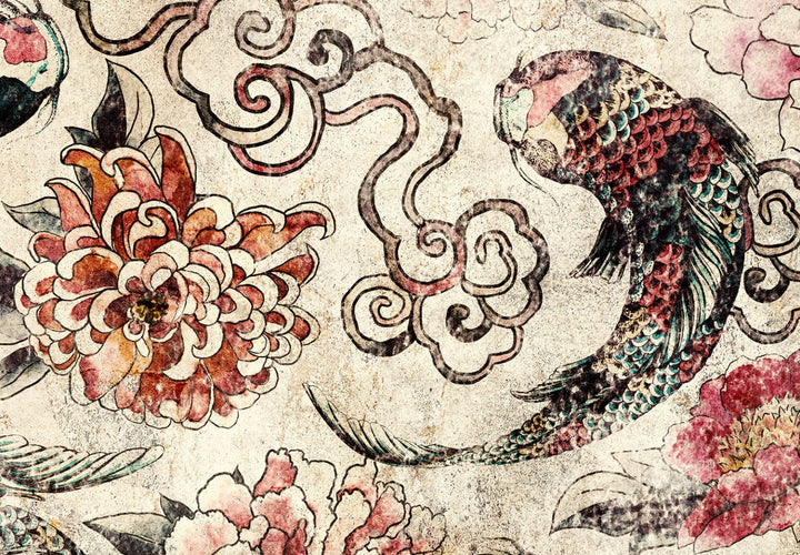 Fototapetes - Japāņu motīvs ar zivīm un ornamentiem - 142391