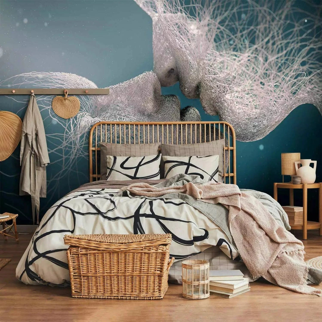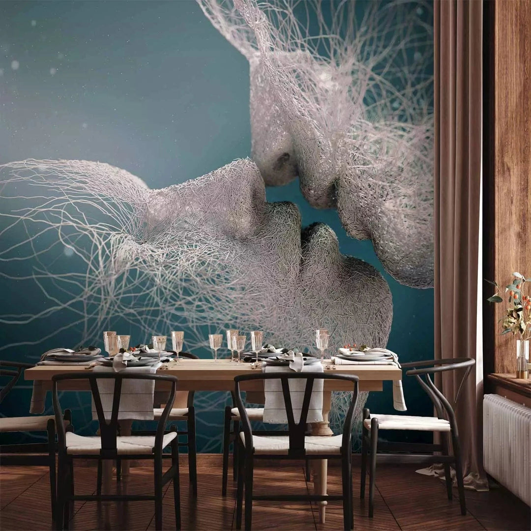 Fototapetes - Mīlestība - abstrakcija ar pāri, kas skūpstās uz zila fona, 128762