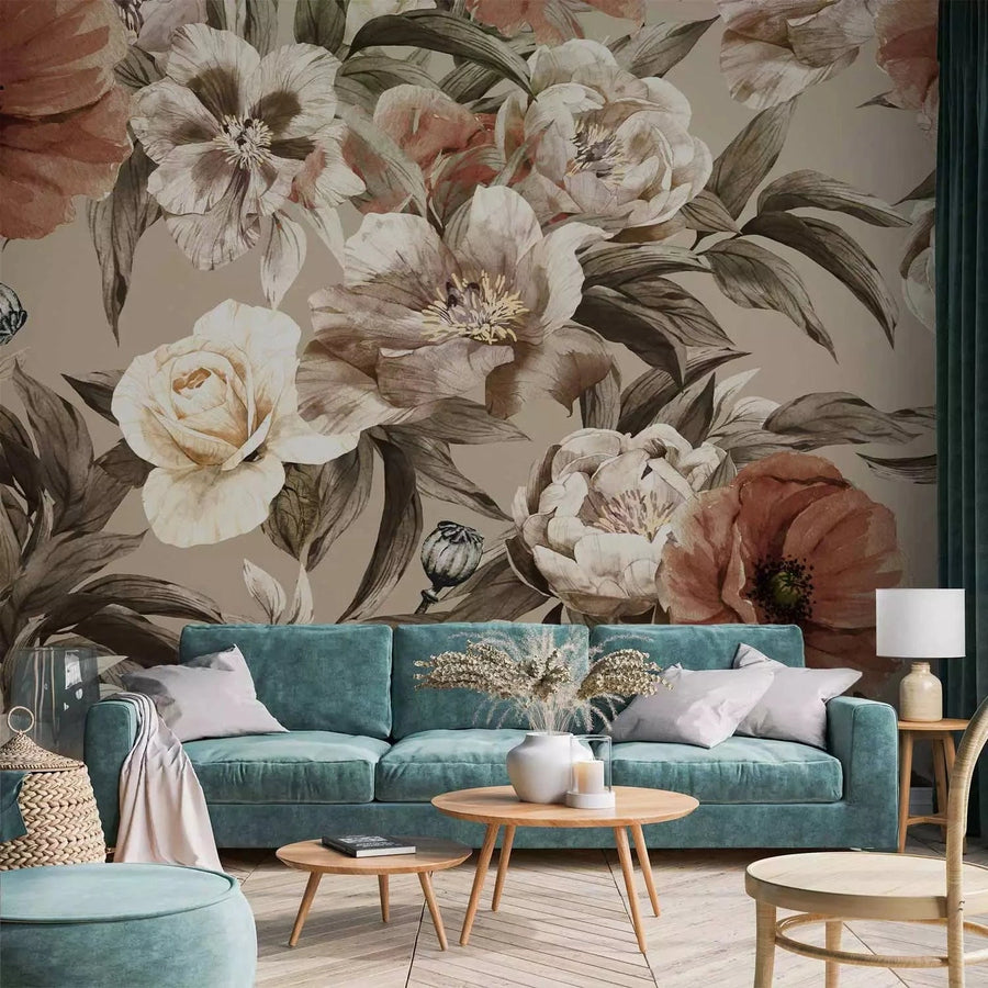 Fototapetes magones un peonijas uz bēša fona #AC9B8B G-ART