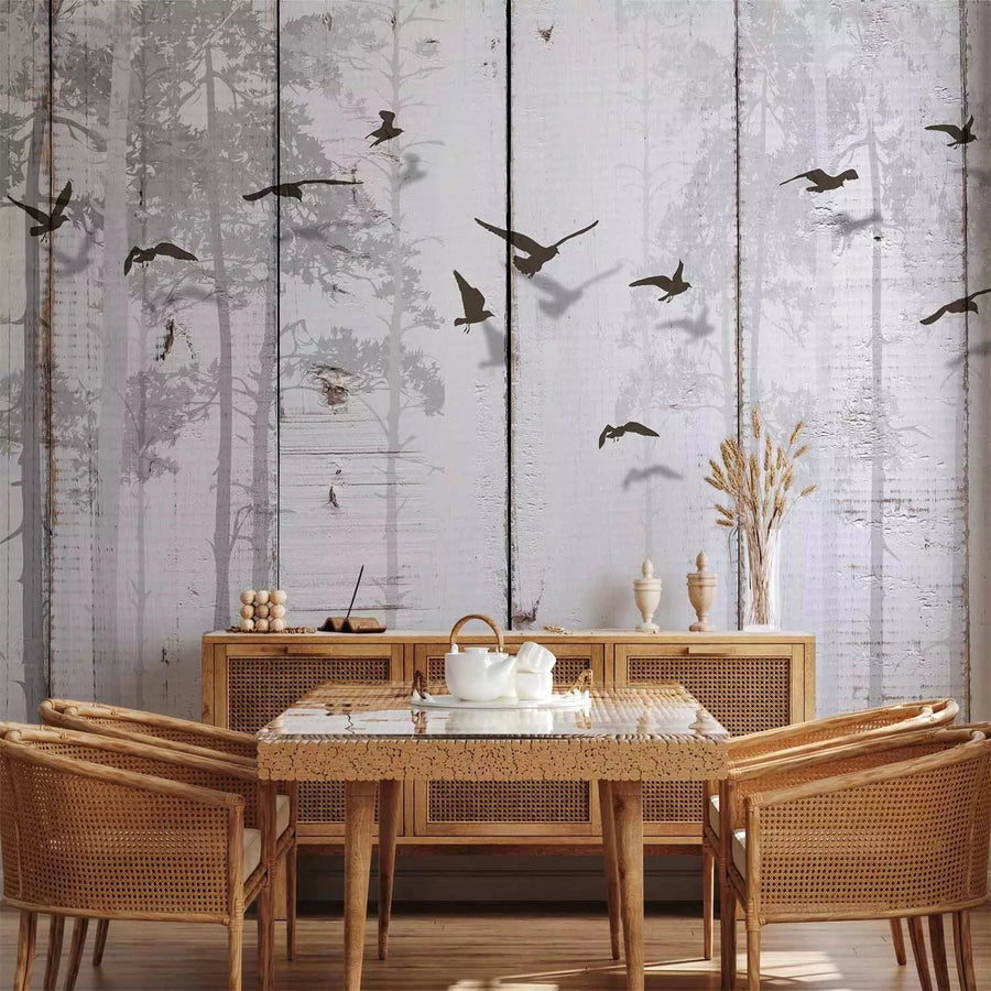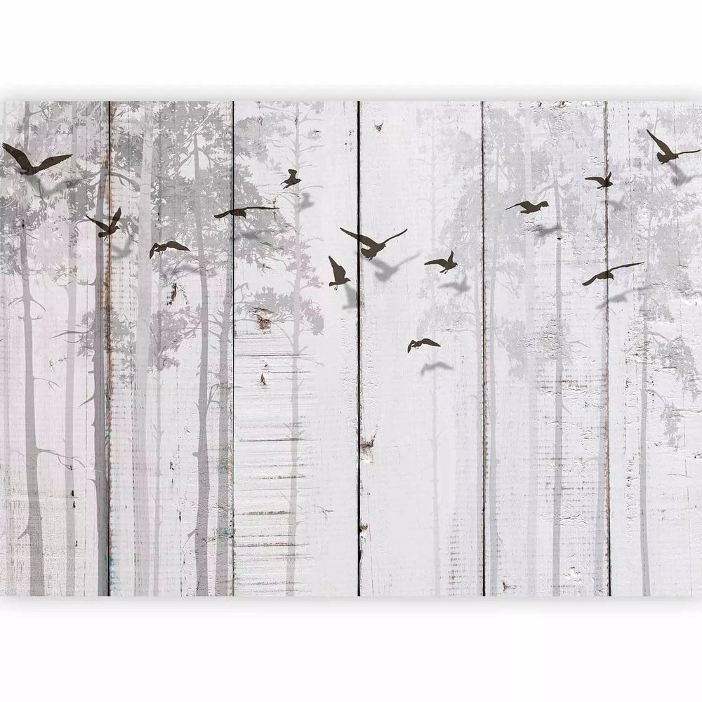 Fototapetes ar putniem pelēkā krāsā - Ēnu mežs, 64115  G-ART