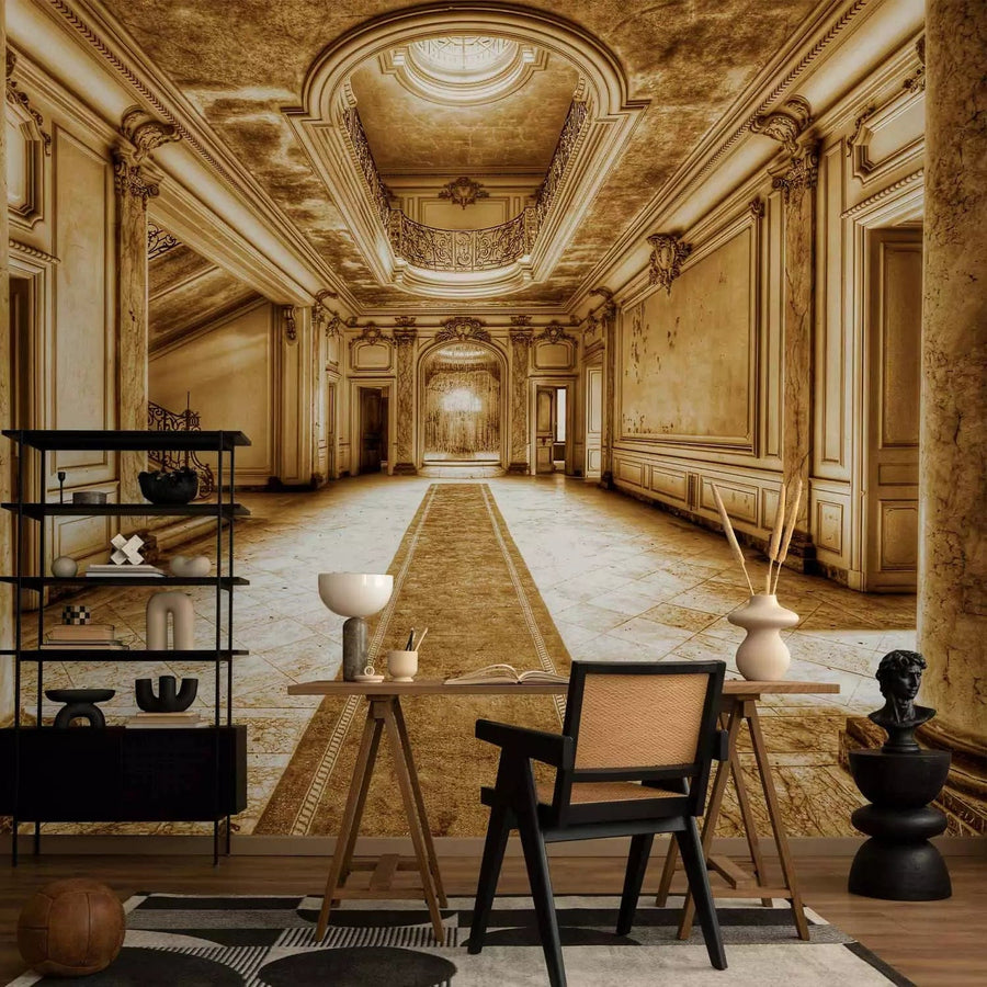 Fototapetes ar halli un marmora grīdu brūnos toņos - 60202  G-ART