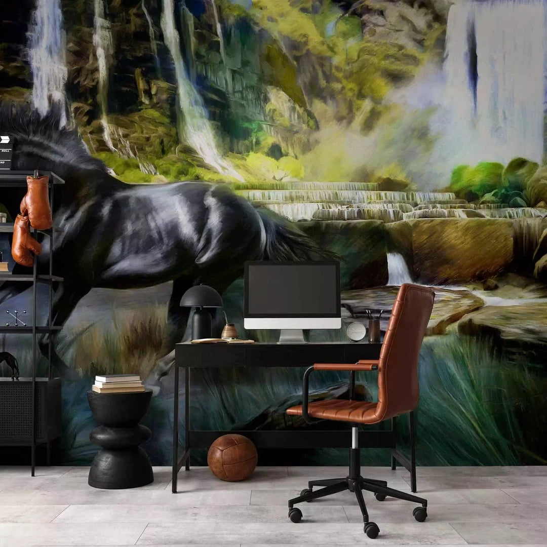 Fototapetes - Zirgs uz ūdenskrituma fona, 59762