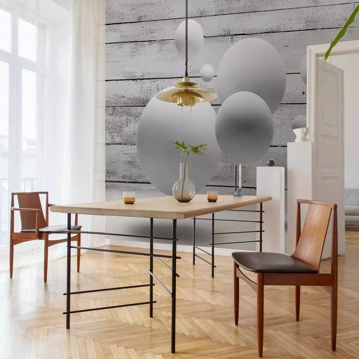 Fototapetes ar 3D optisku ilūziju pelēkos toņos - Bumbiņas, 94219
