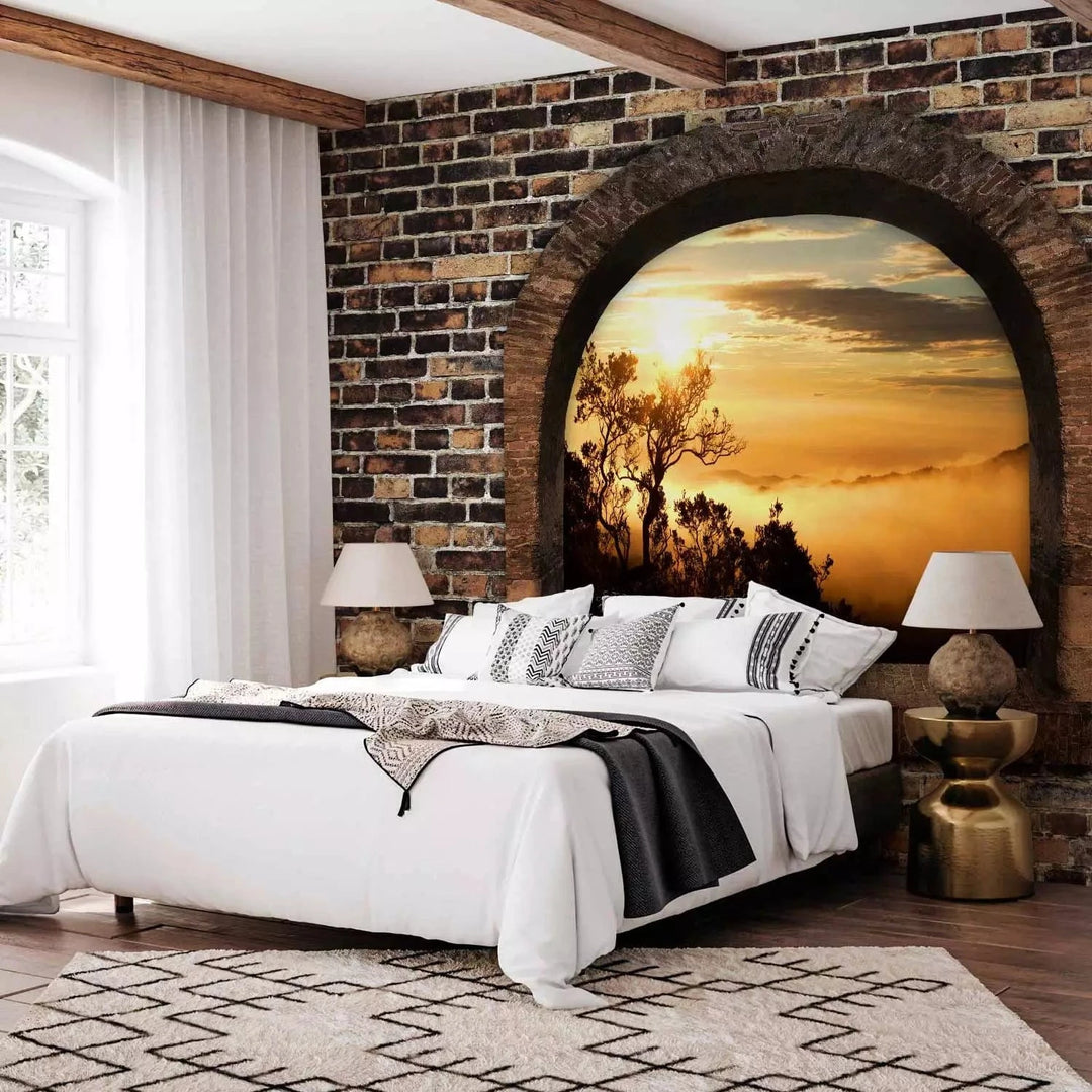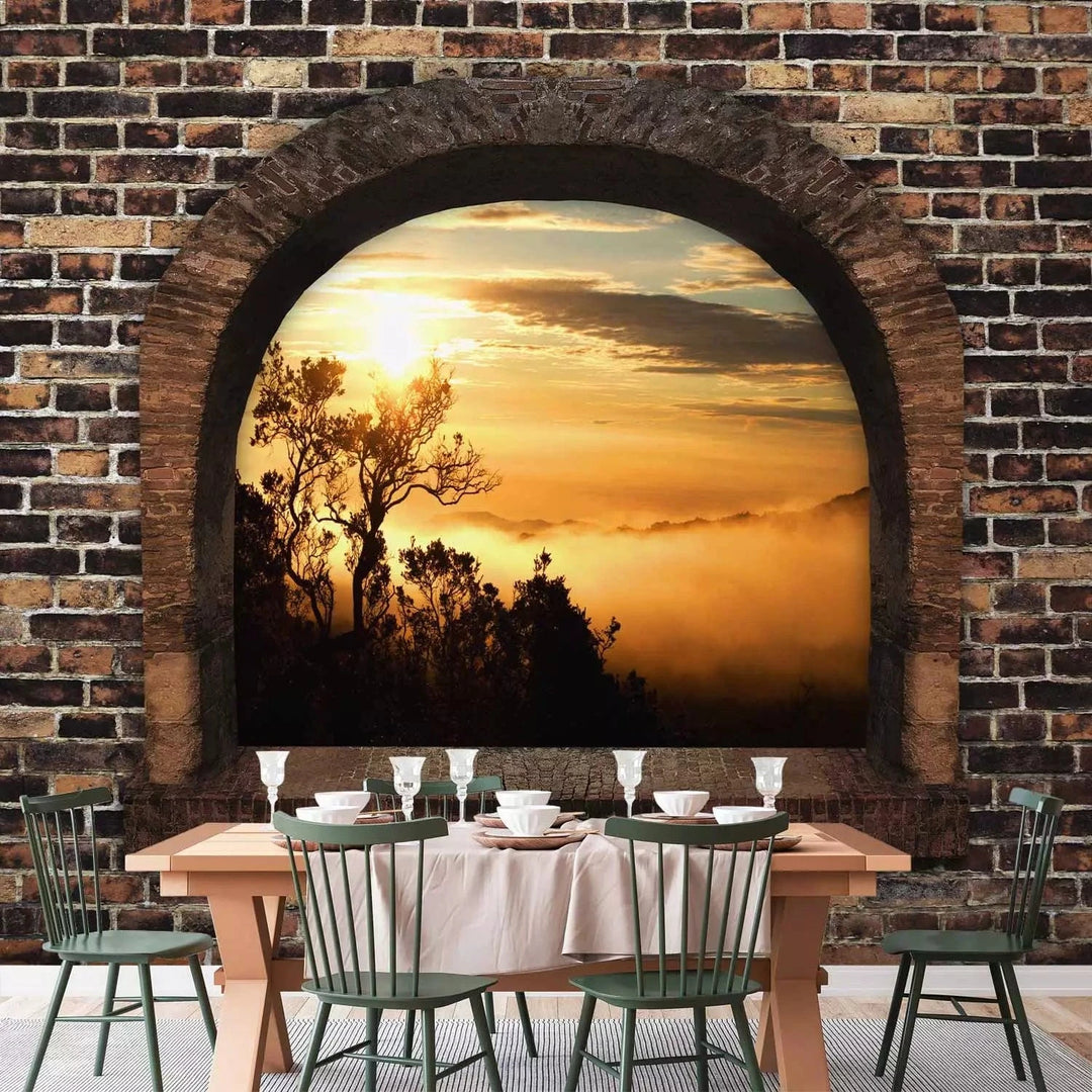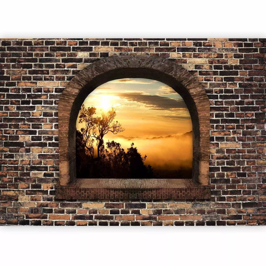 3D fototapetes ar perspektīvu - Akmens logs: rītas migla, 97952
