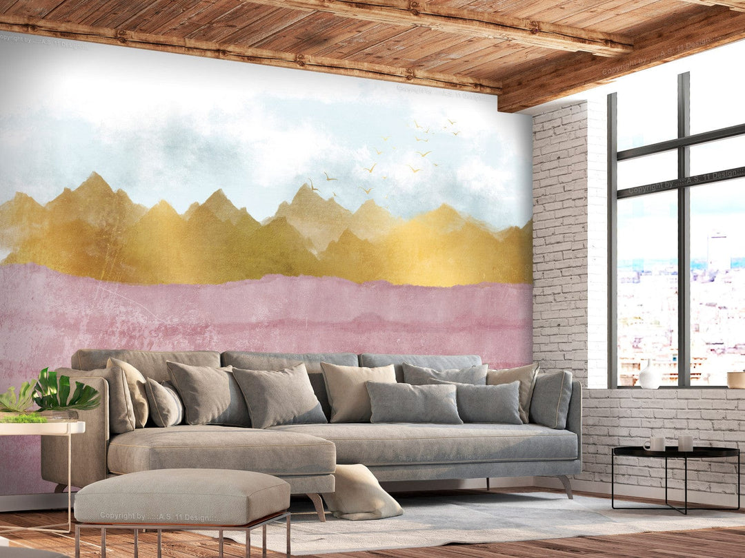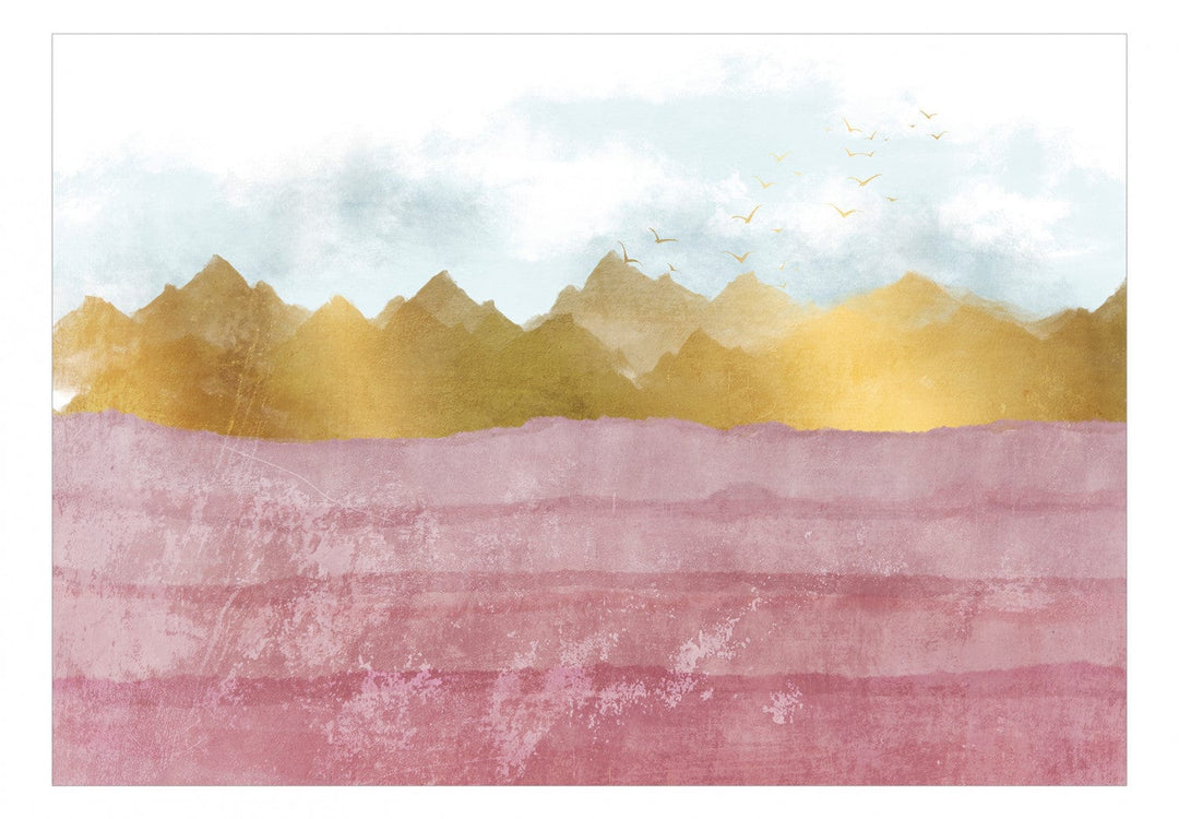 Fototapetes ar kalniem - Ainava zilā, zelta un violetā krāsā, 138528