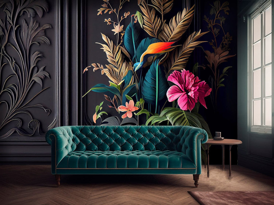 Fototapetes - Krāsaina eksotiska kompozīcija uz tumša fona, 150890