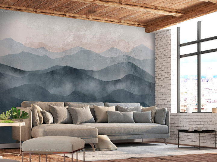 Fototapetes - Mūsdienīga abstrakcija ar kalnu ainavu, 138166