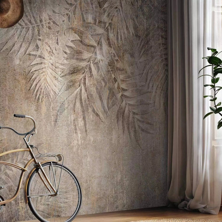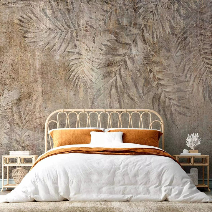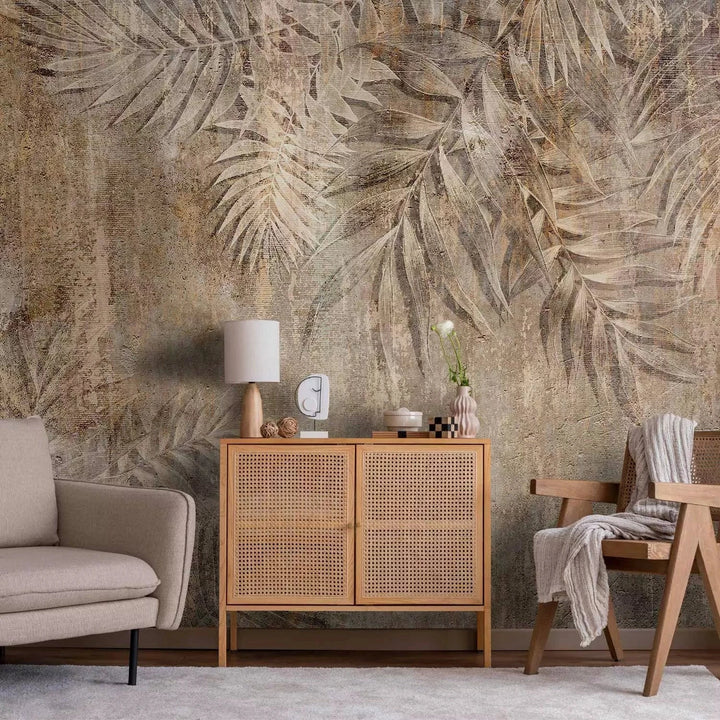 Fototapetes ar palmu lapām brunos toņos - Palmu skice, 143181