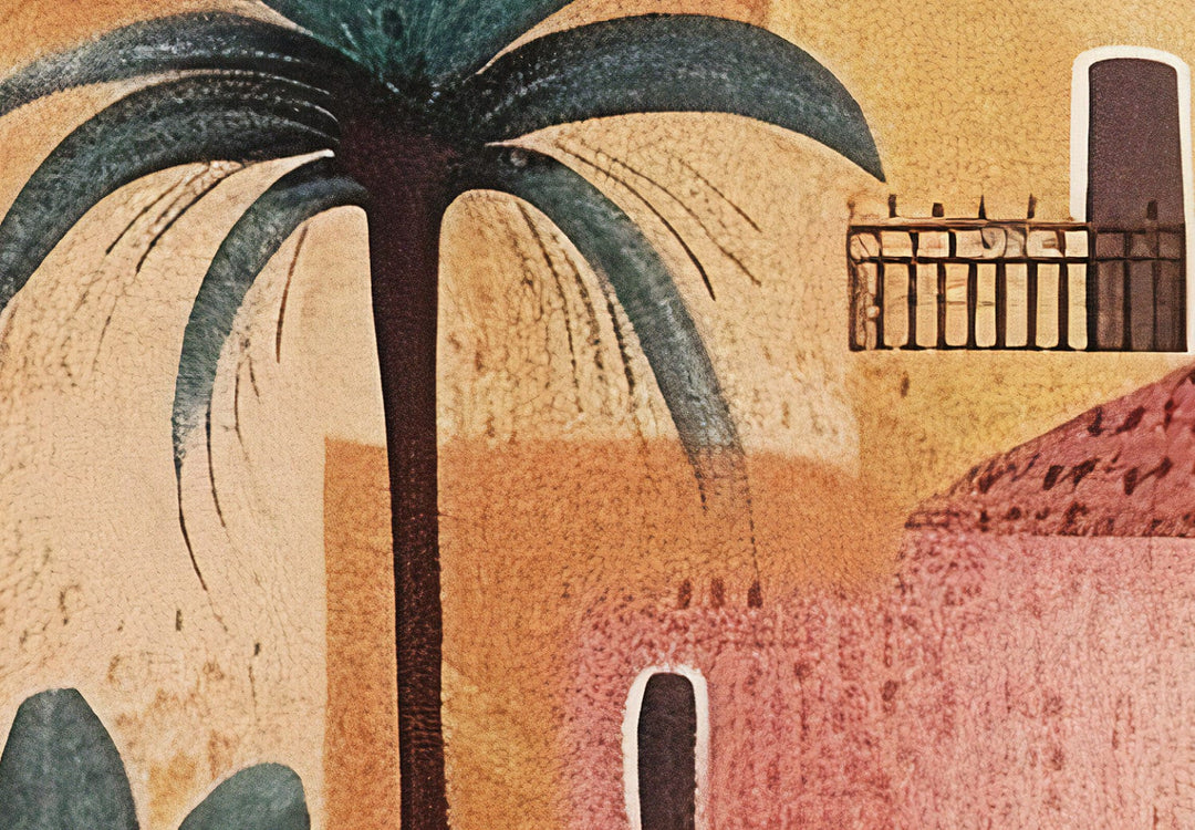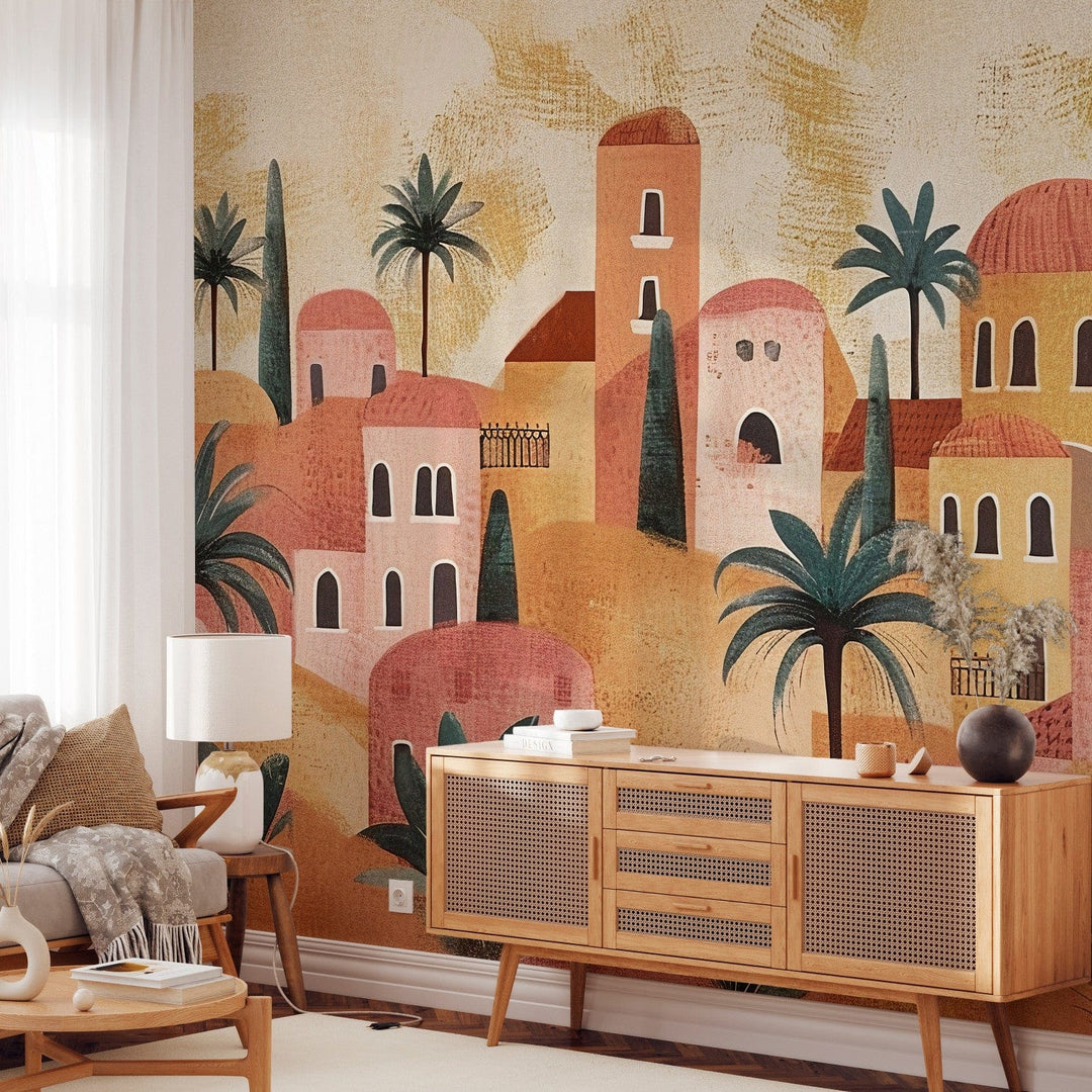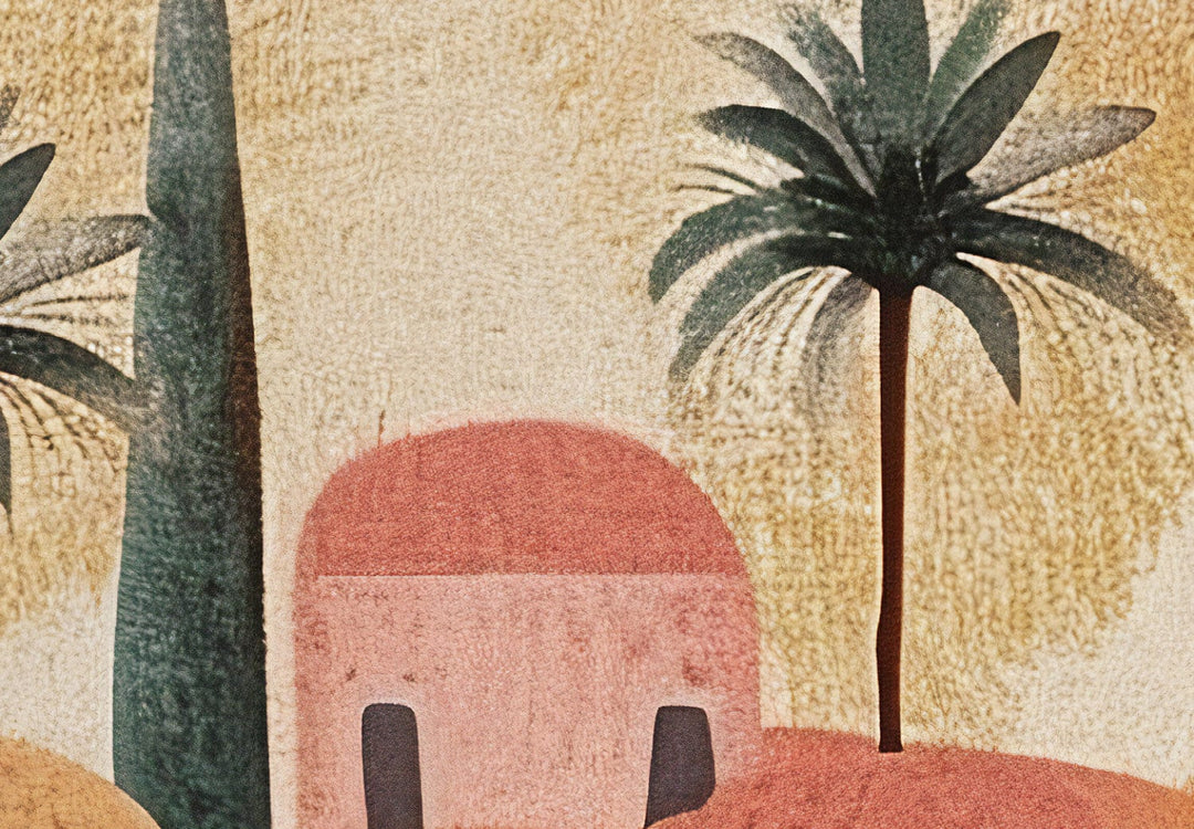 Fototapetes - Pilsēta starp palmām - kompozīcija terakotas krāsās, 159456