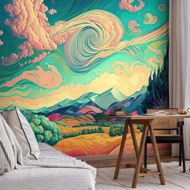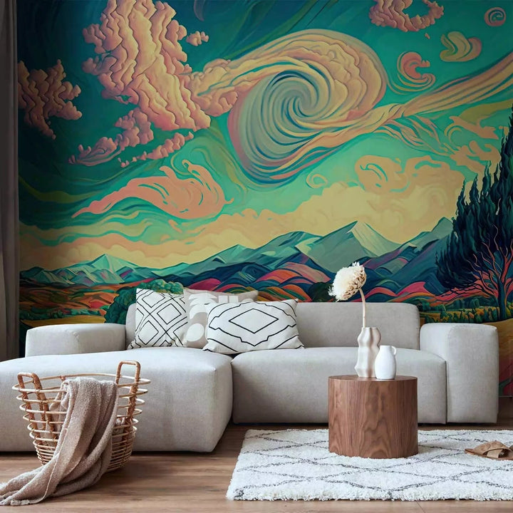 Fototapetes - Van Goga darbu iedvesmota krāsaina ainava, 151027