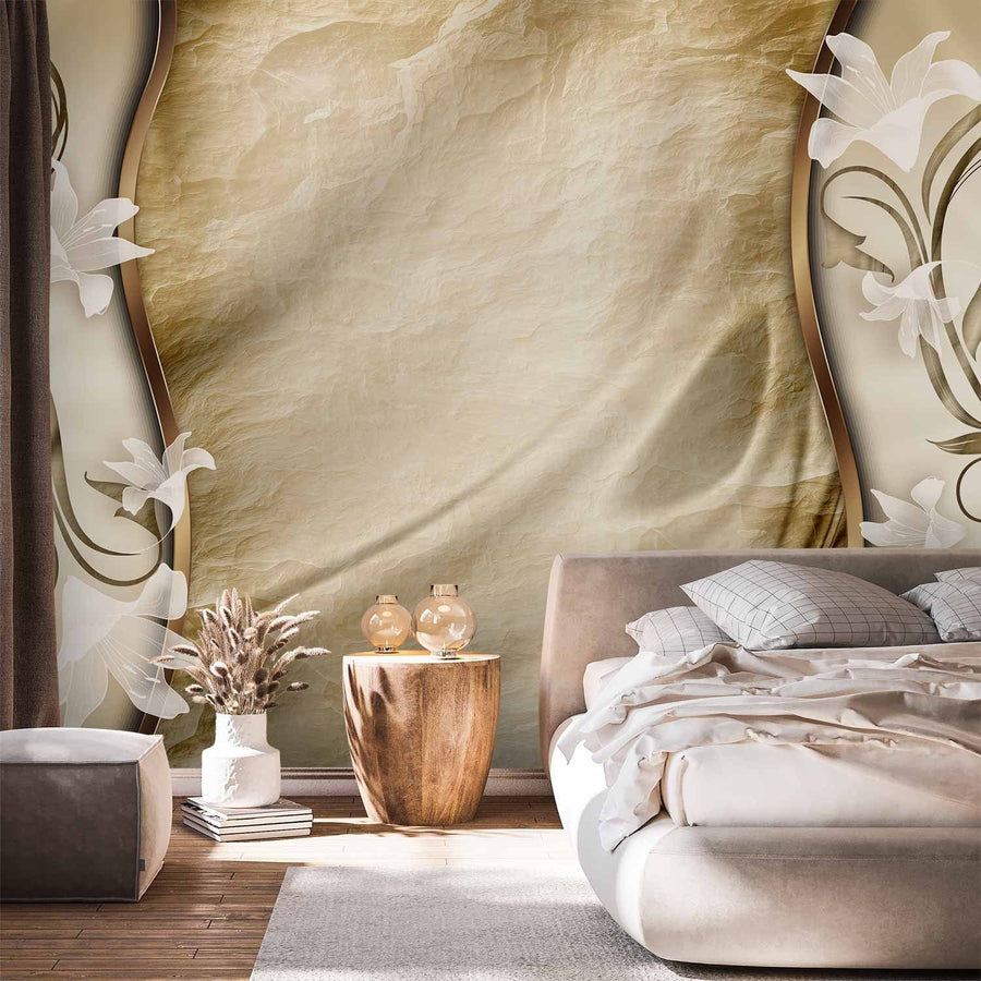Fototapetes ar baltiem ziediem uz bēša abstrakta fona - Medus - 60130 G-ART