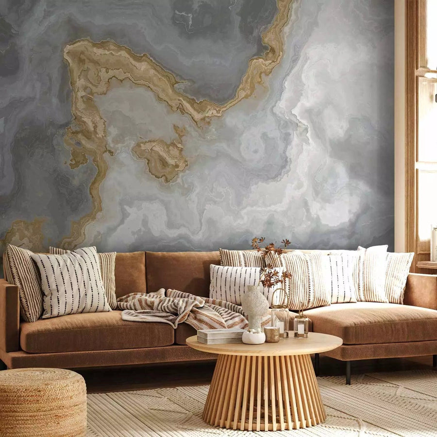 Fototapetes viesistabai ar abstrakciju - Zelta mākonis - pelēkā G-ART