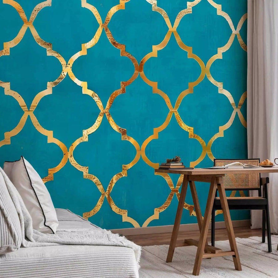 Abstraktas fototapetes - Zelta dekors uz tirkīza, Art Deco stilā G-ART