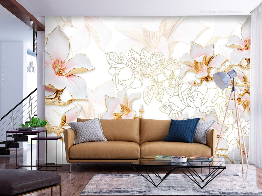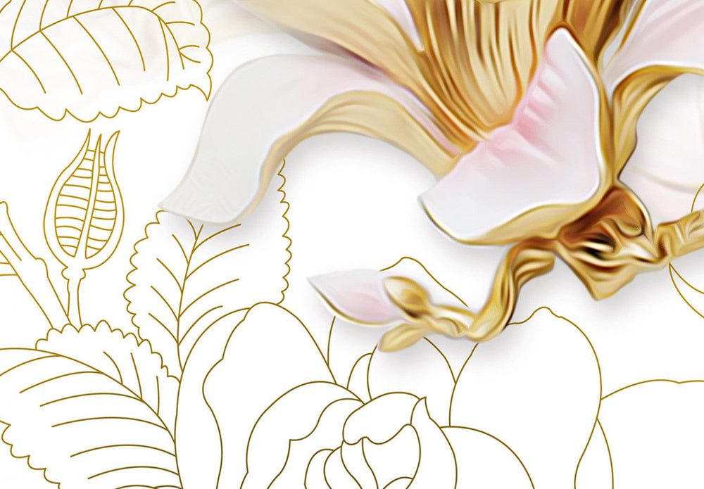Fototapetes ar baltam orhidejām uz zelta fona - Zelta deja - 59718 G-ART