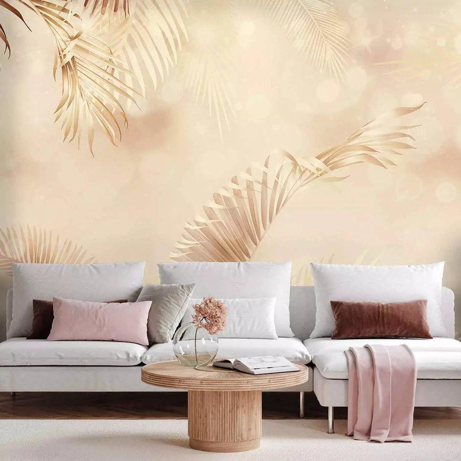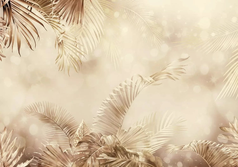 Fototapetes - Eksotiskā veģetācija – palmu lapu motīvs izsmalcinātās krāsās - 142253
