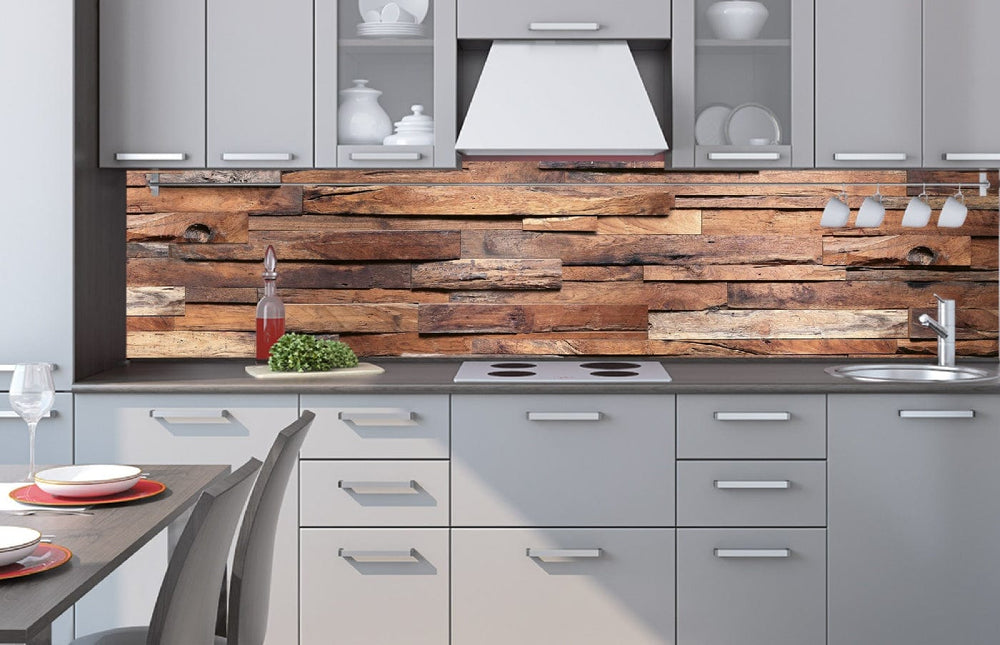 Pašlīmējošas fototapetes virtuvei - Koka siena II (260x60 cm) Art4home