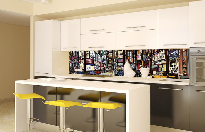 Fototapetes virtuvei ar lamināciju, pašlīmējošas plēve un flizelīns - Taimskvērs (260x60 cm)