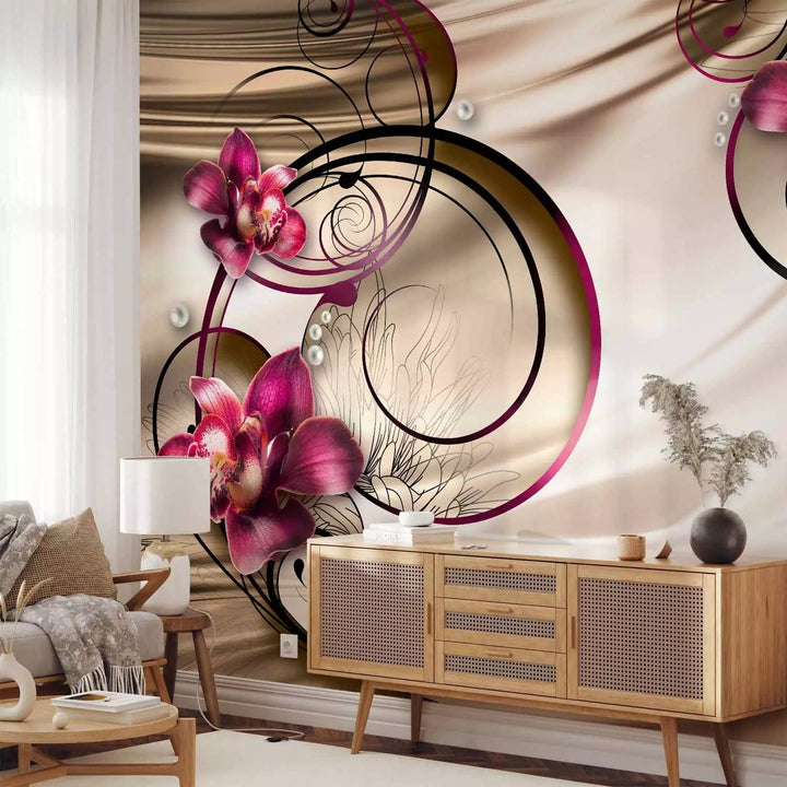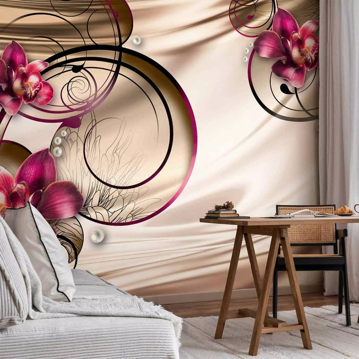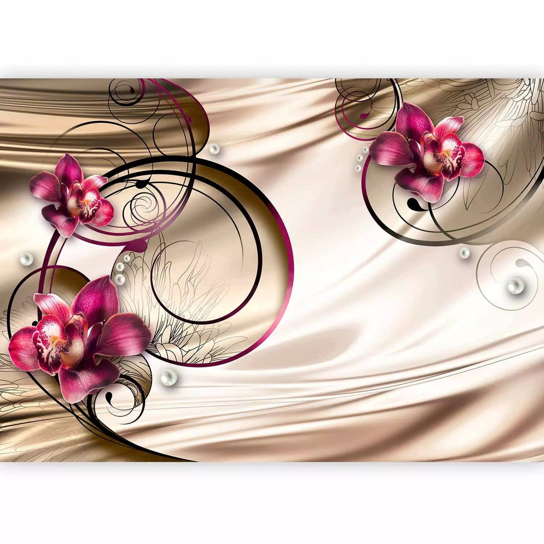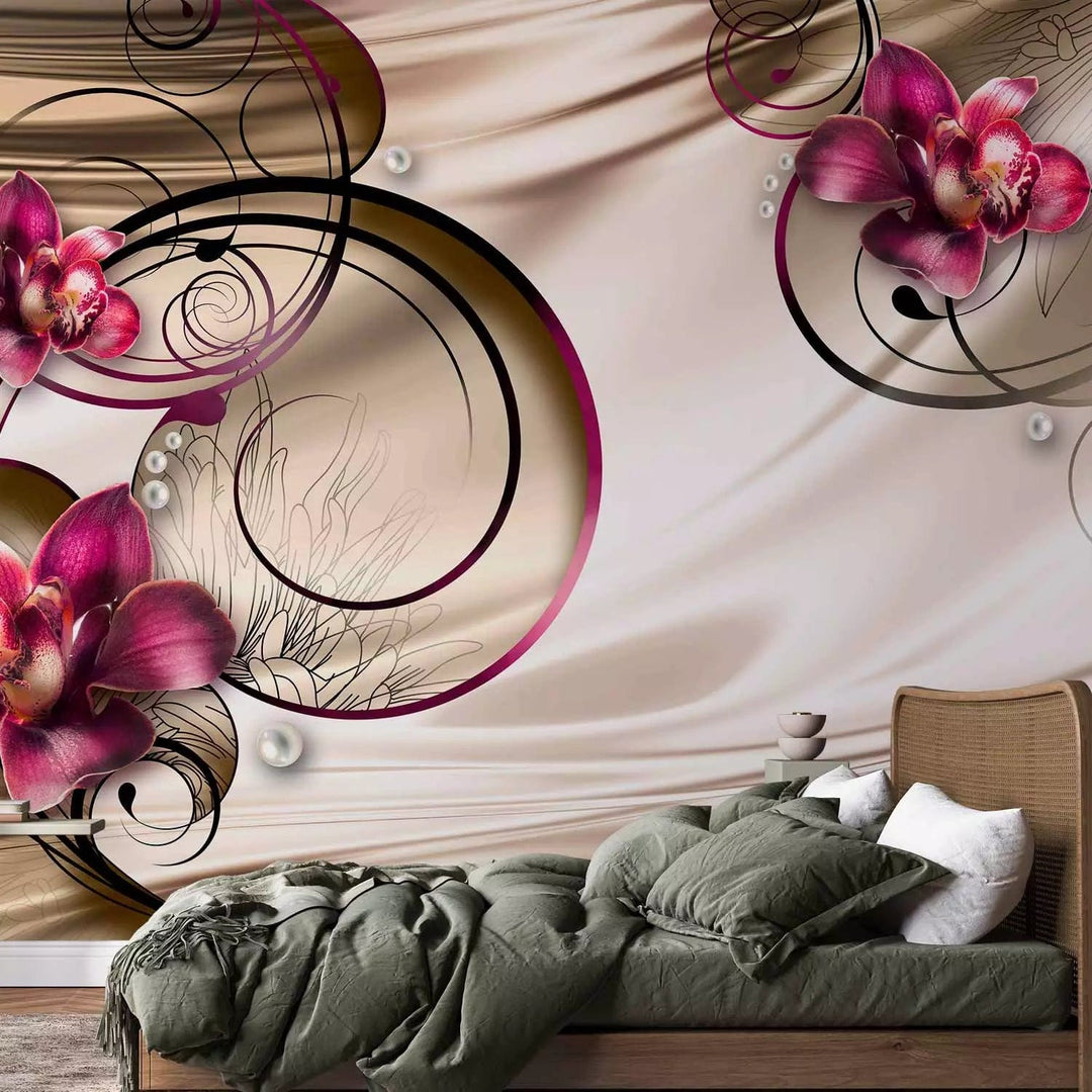 Fototapetes ar rozā orhidejām uz samta fona - Bauda, 60313