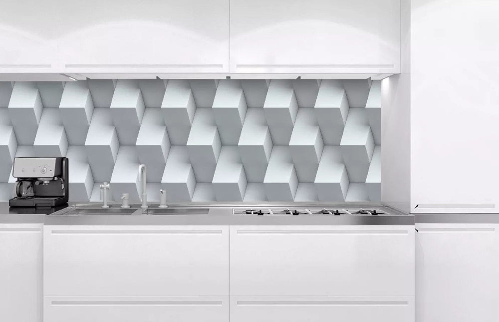 Fototapetes virtuvei ar lamināciju, pašlīmējošas plēve un flizelīns - Kubveida siena (180x60 cm)