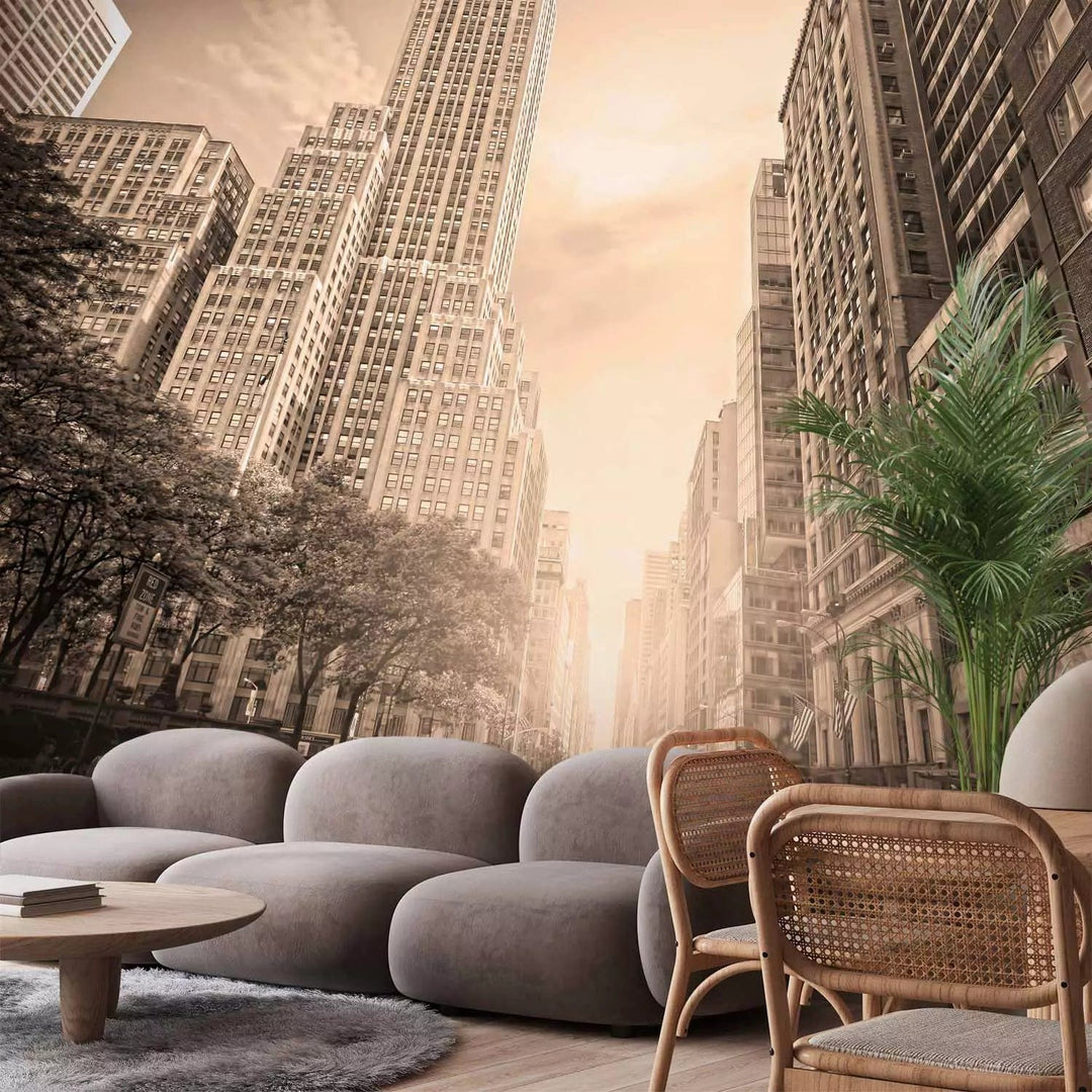 Fototapetes - Ņujorkas arhitektūra ar taksi sēpijas krāsā, 61501