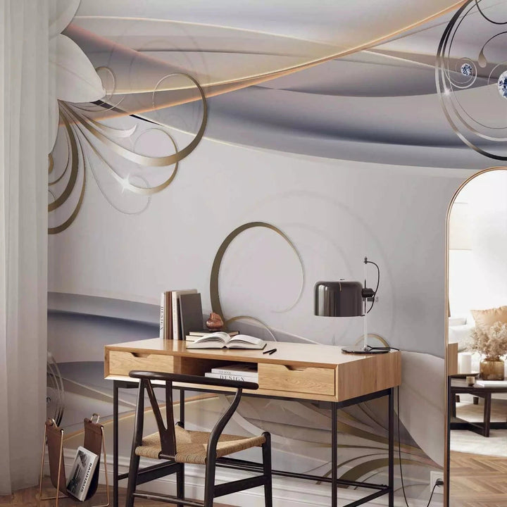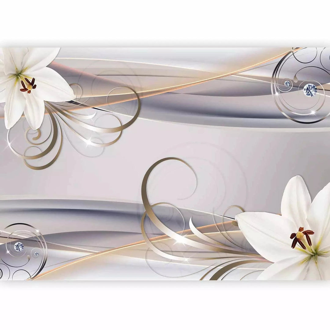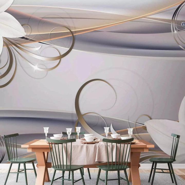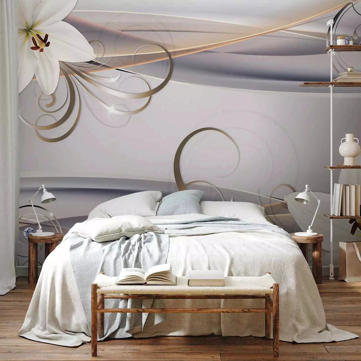 Fototapetes ar lilijām un spirālēm uz pelēka fona, 62098