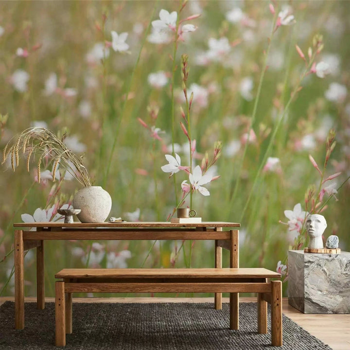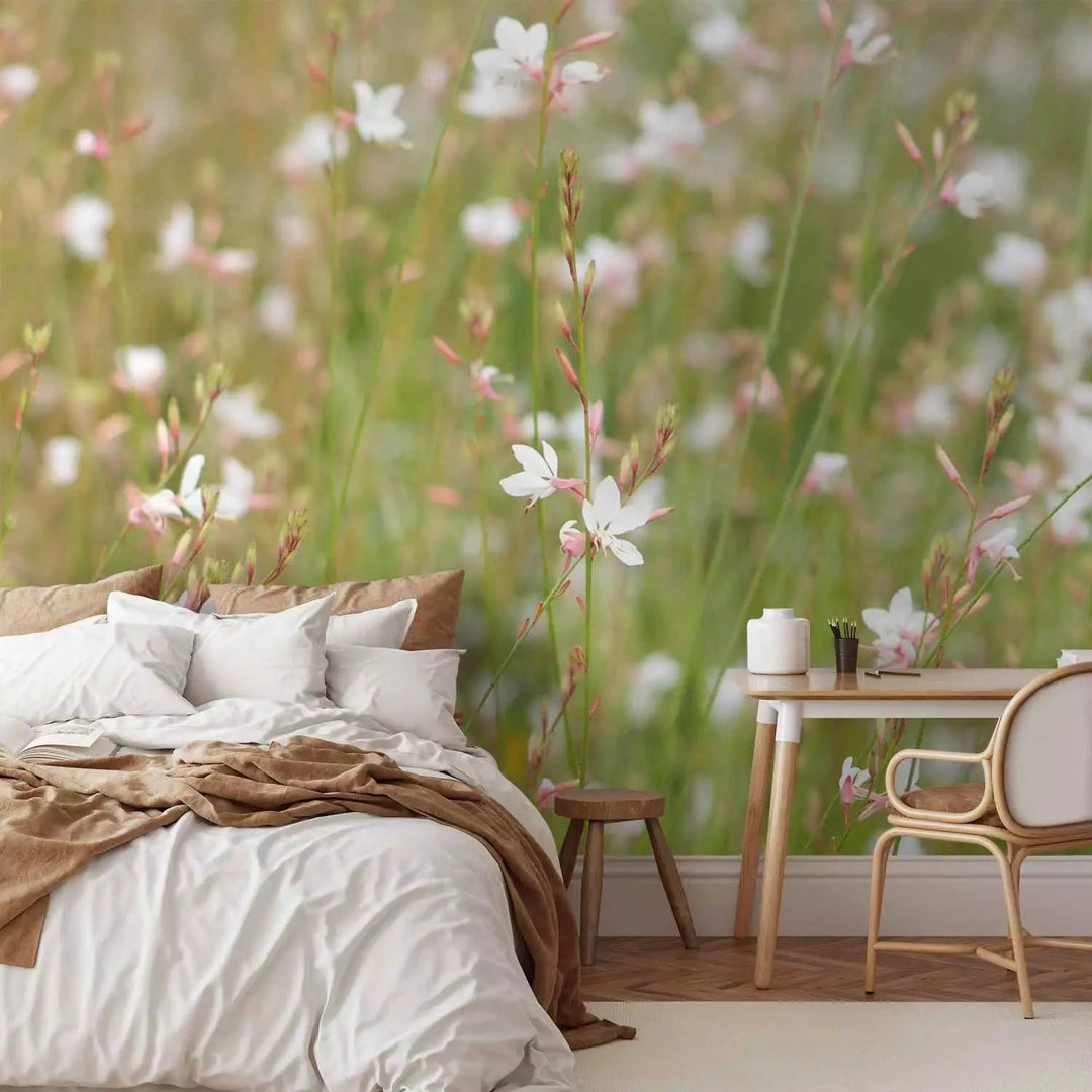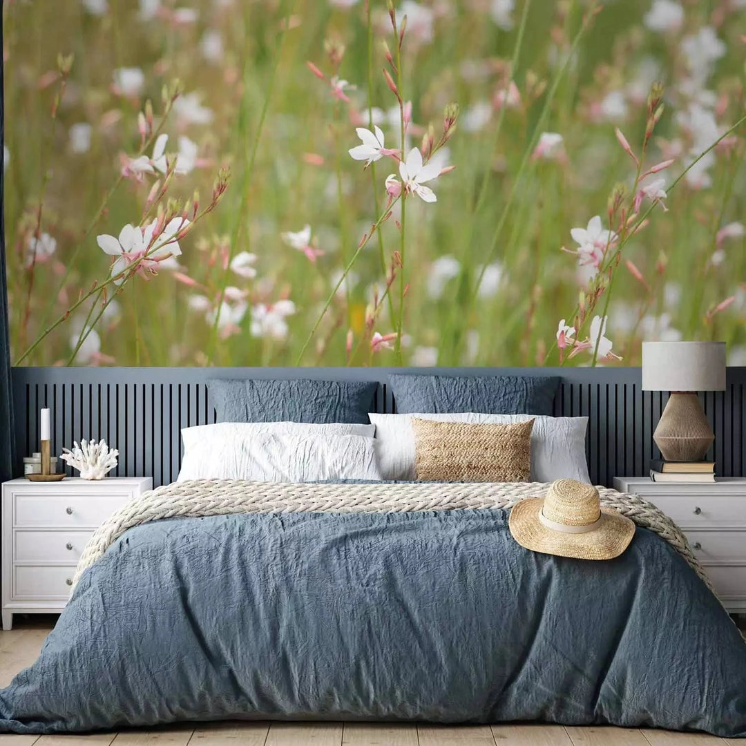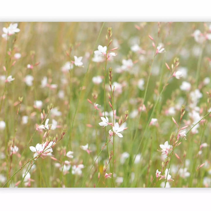 Fototapetes - Saulaina pļava ar ziediem tuvplānā, 60472