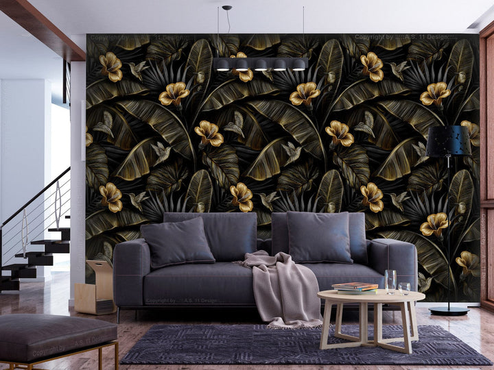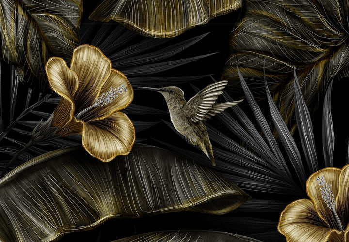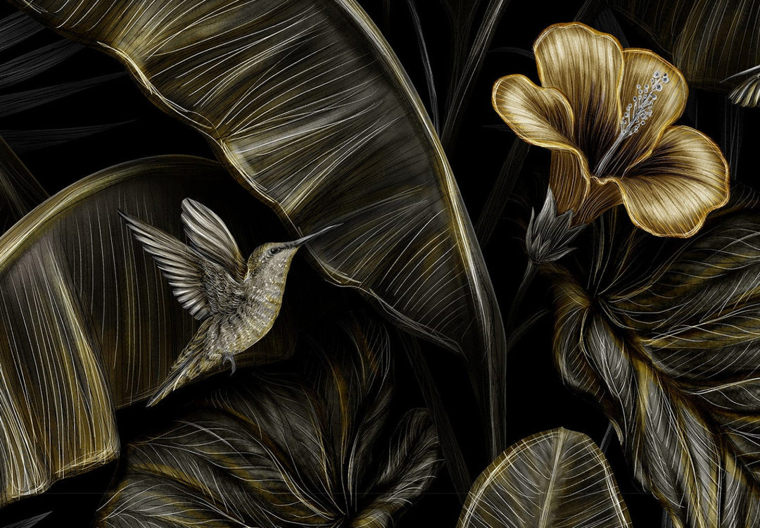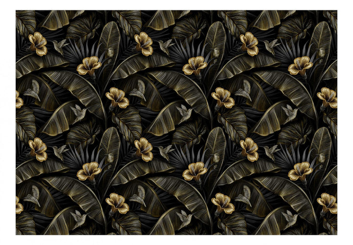 Fototapetes - Intriģējošs raksts ar ziediem un eksotiskām lapām, 137855