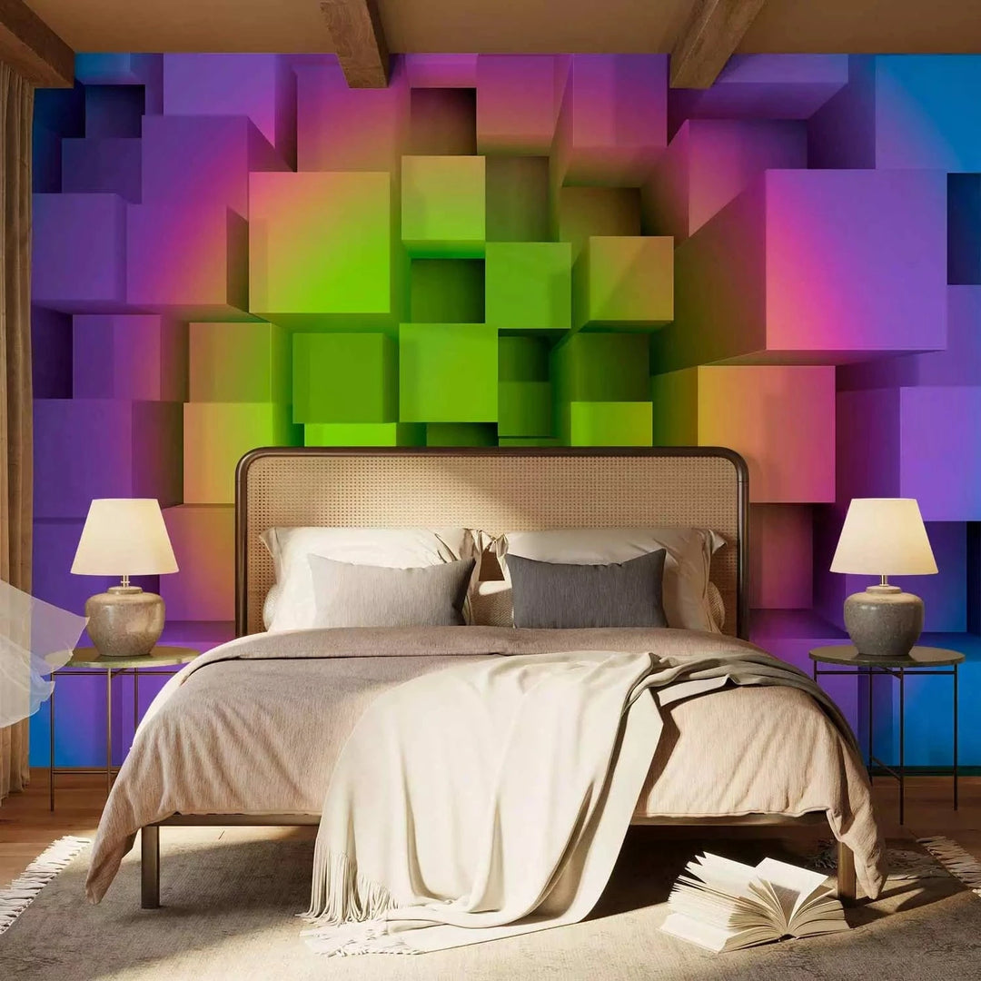 Fototapetes - krāsainas ģeometriskas figūras ar ilūzijas efektu, 97062