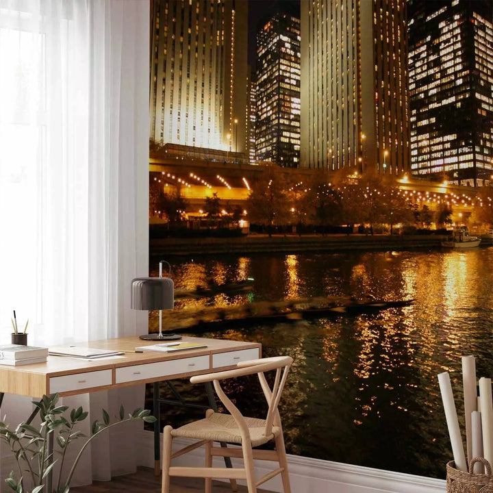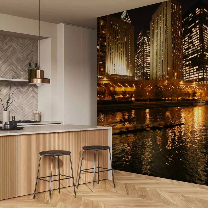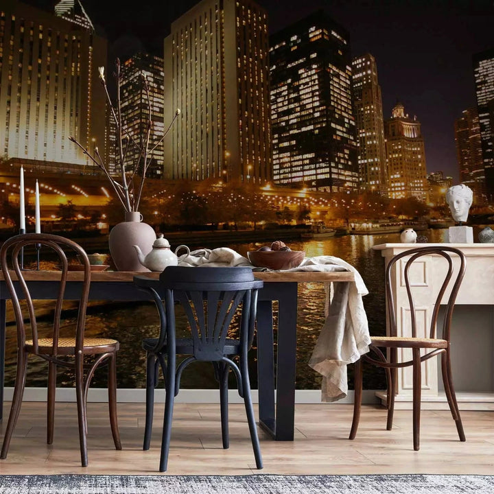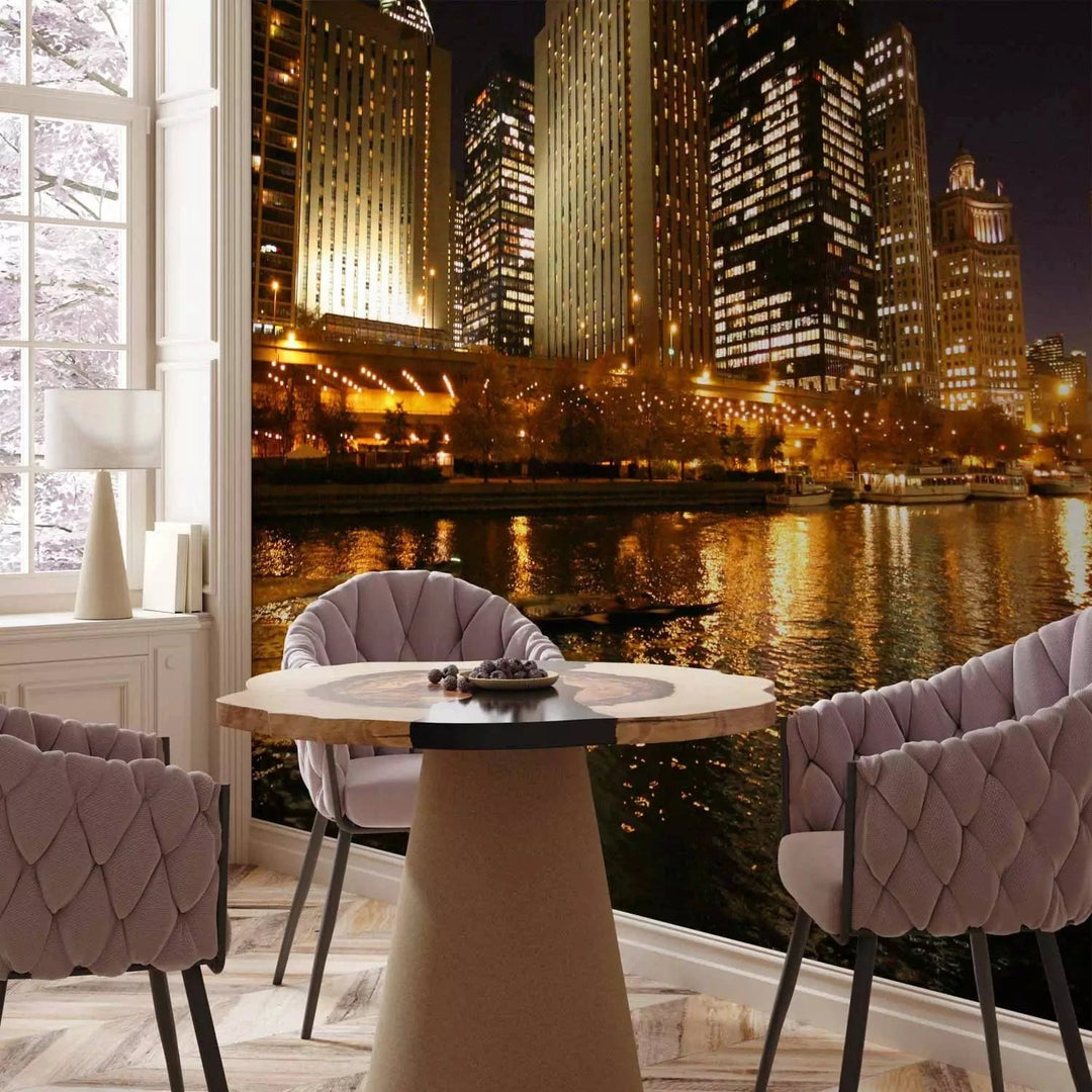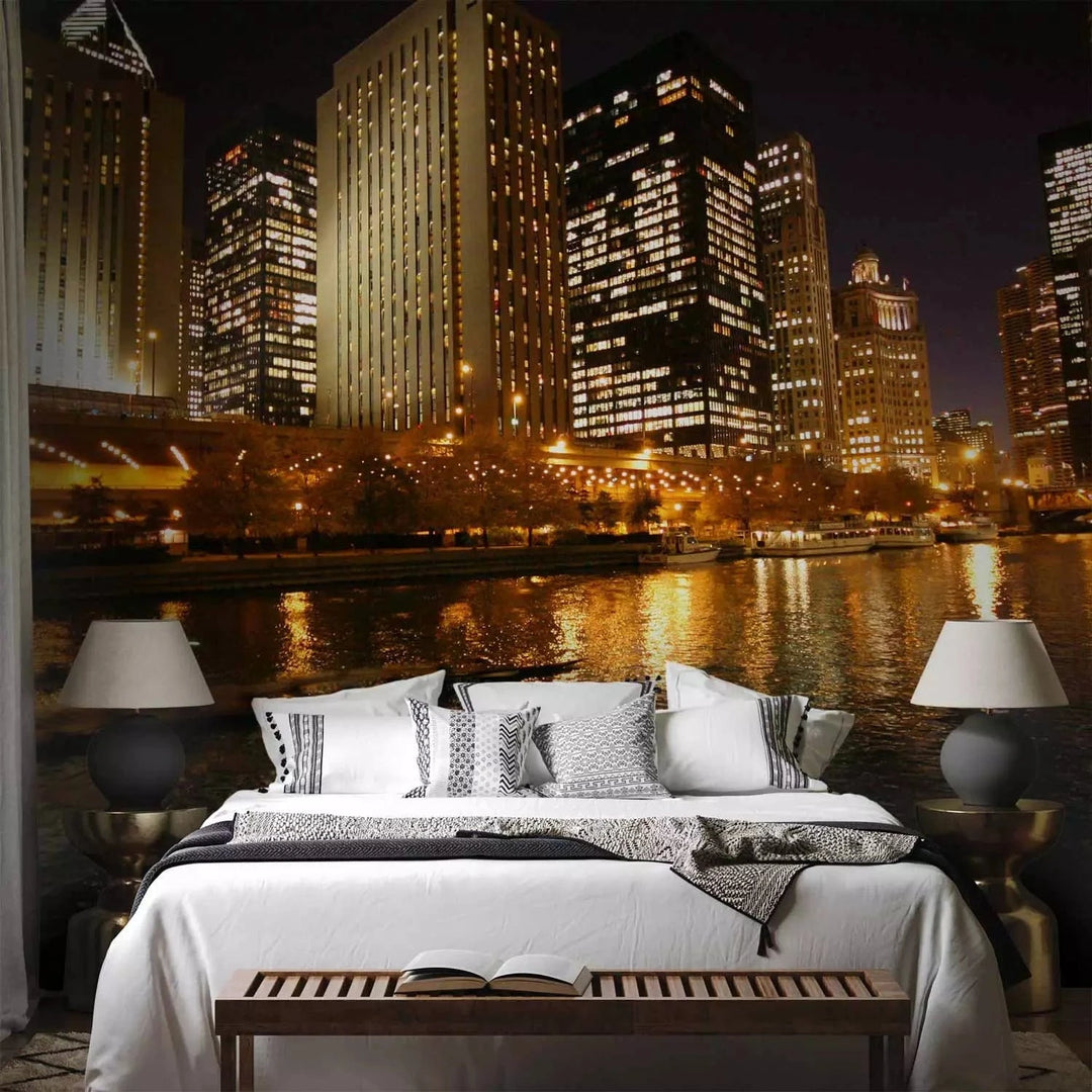 Fototapetes ar nakts lielpilsētu - Čikāgas arhitektūra, 97229