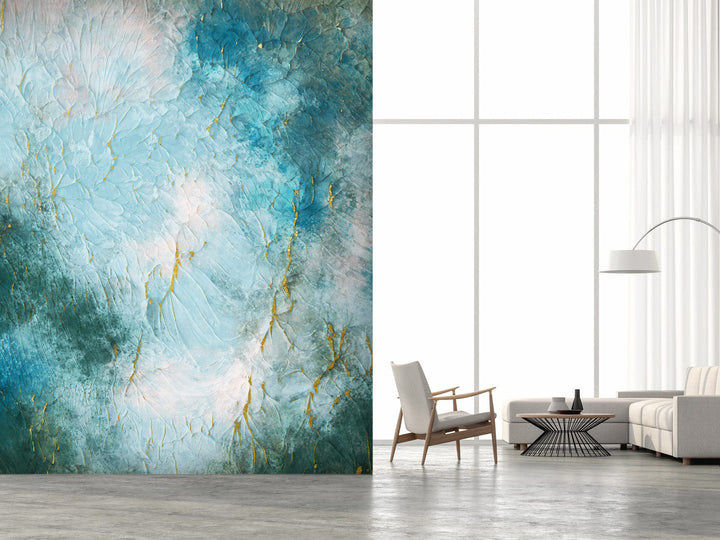 Fototapetes ar abstrakta rakstu zilos toņos - Apzeltīta siena, 142647