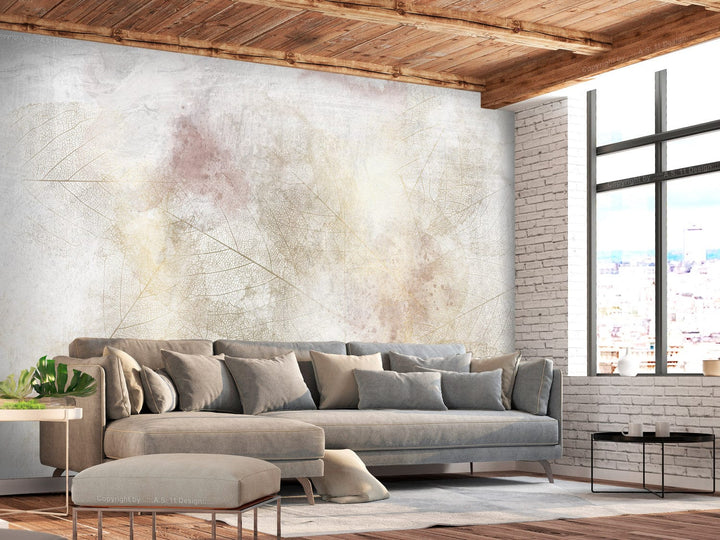 Fototapetes ar lapas zīmējumu gaišos toņos, 143012