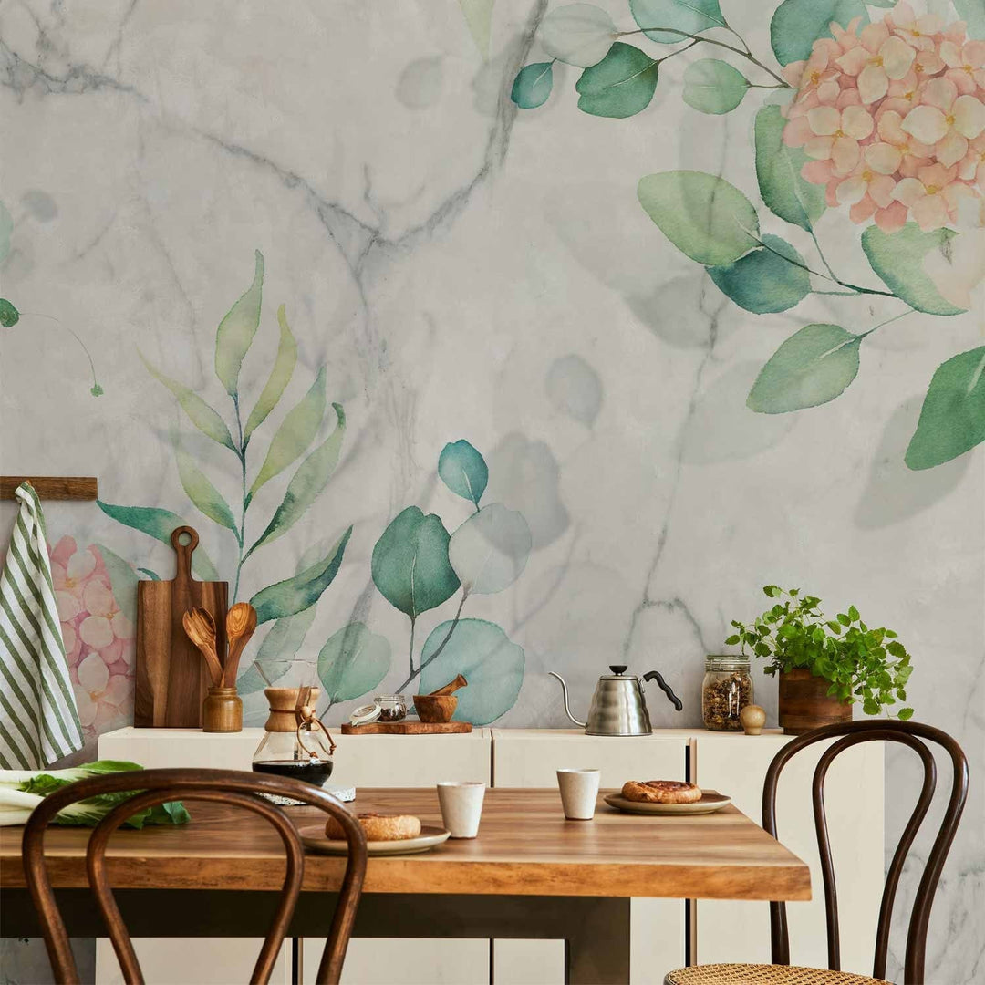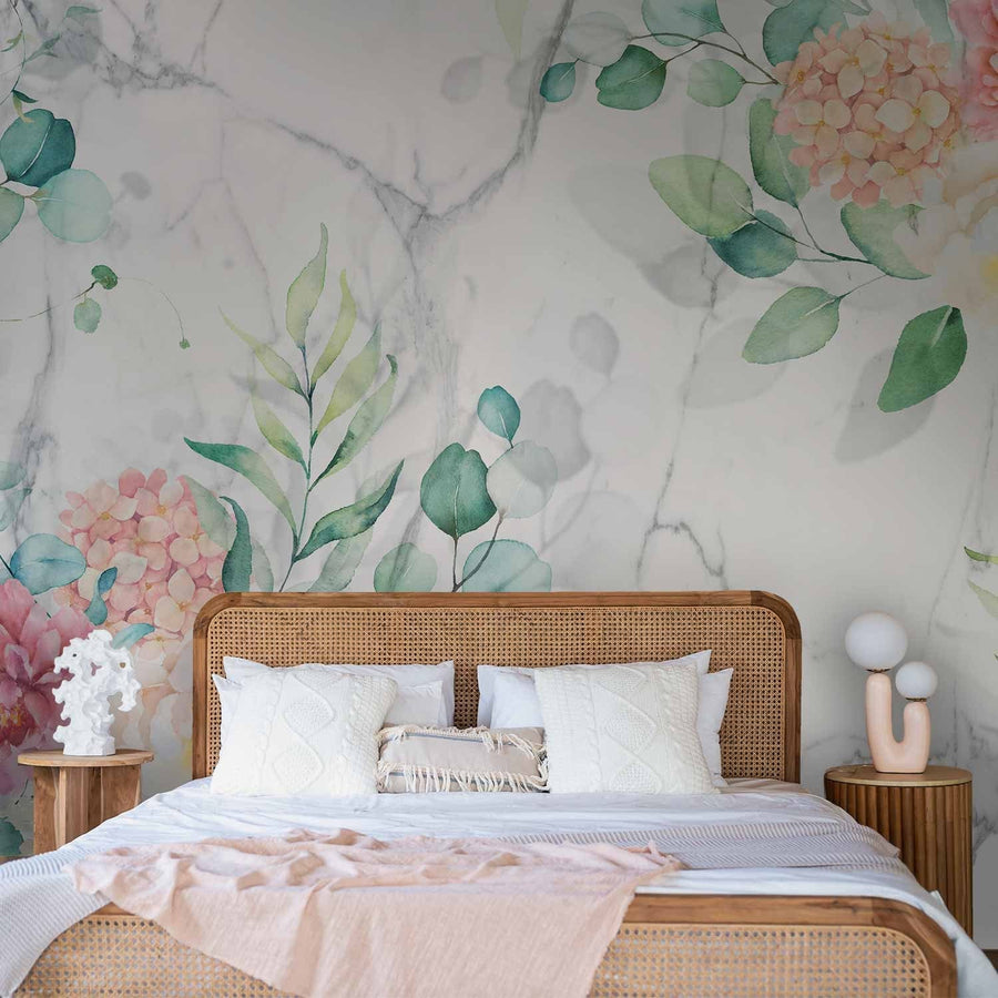 Fototapetes ar ziediem - Ziedi un marmora, 135946