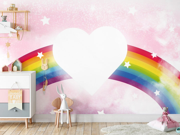 Fototapetes bērnu istabai - Sirds un krāsaina varavīksne mākoņos, 143794