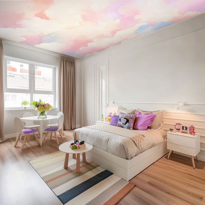 Fototapetes griestiem - Krāsaini mākoņi - varavīksnes kompozīcija ilustratīvā stilā, 159923
