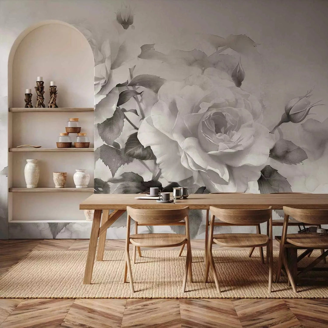 Fototapetes - Melnbalta kompozīcija ar rozēm, 160395