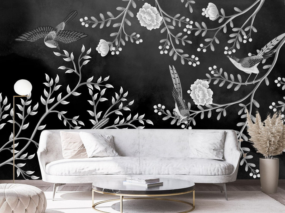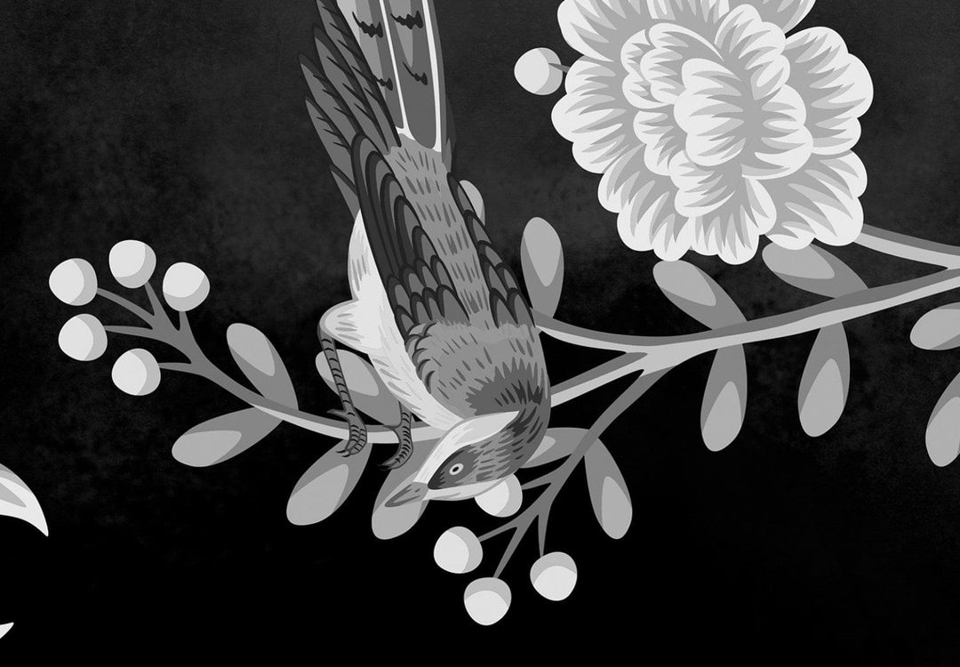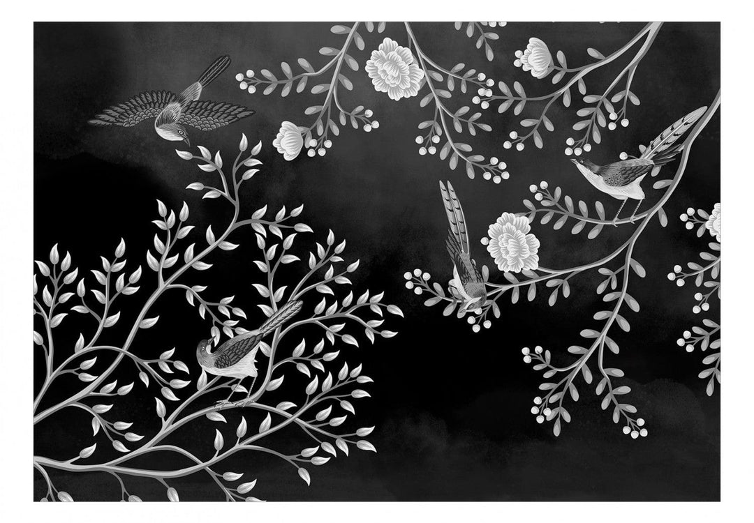 Melnbaltas fototapetes - Putni starp zariem, 138836