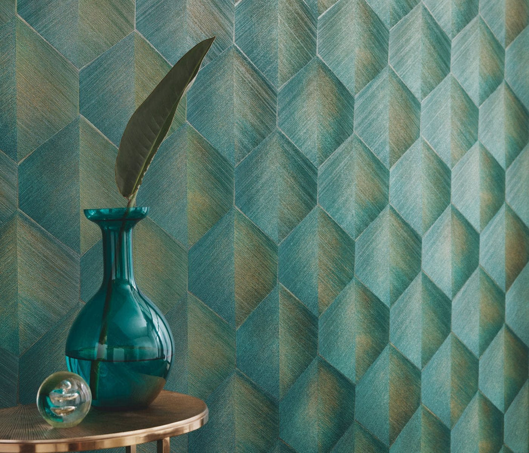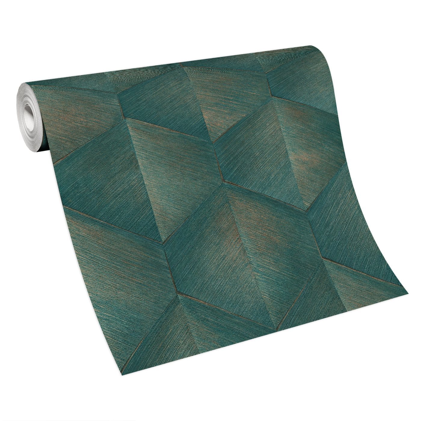 Tapetes ar grafisku 3D rakstu tumši zaļā krāsā, Erismann, 3751333