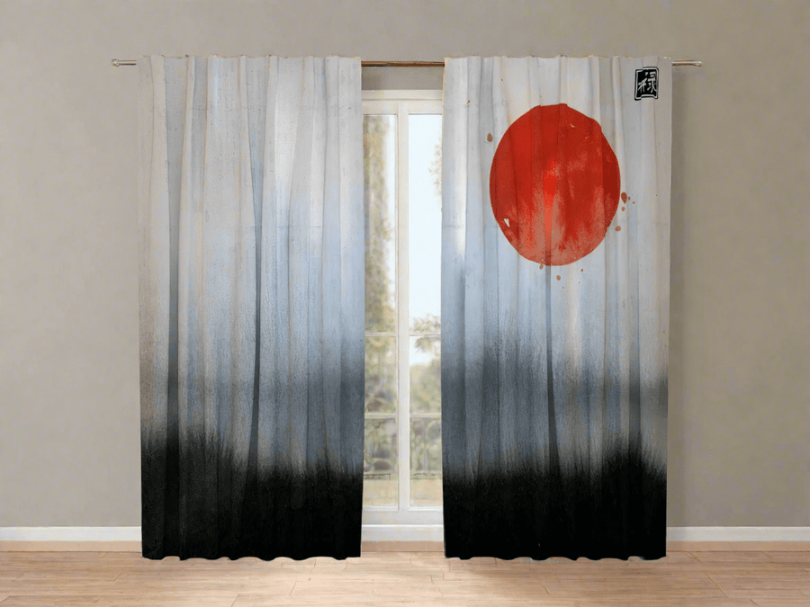 Aizkari austrumu stilā ar hieroglifiem, (pelēkā un sarkanā krāsā) Tapetenshop.lv