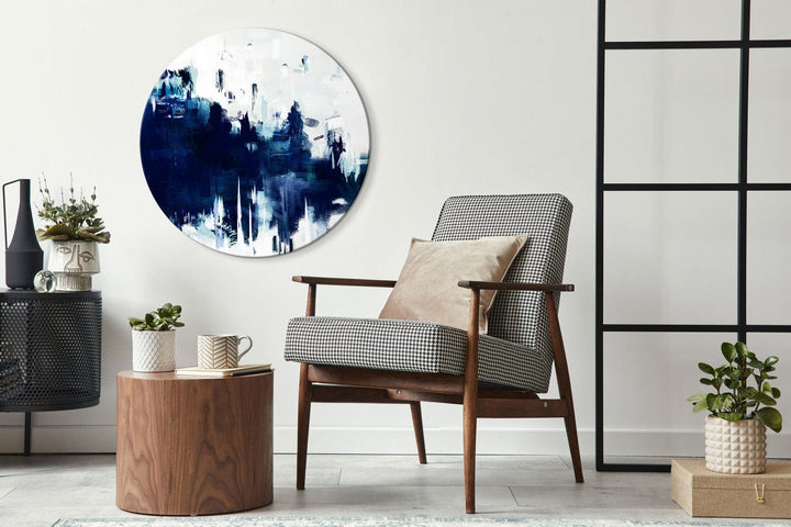 Apaļa kanva (Deluxe) - Abstrakcija ar tumši zilām svītrām, 148739