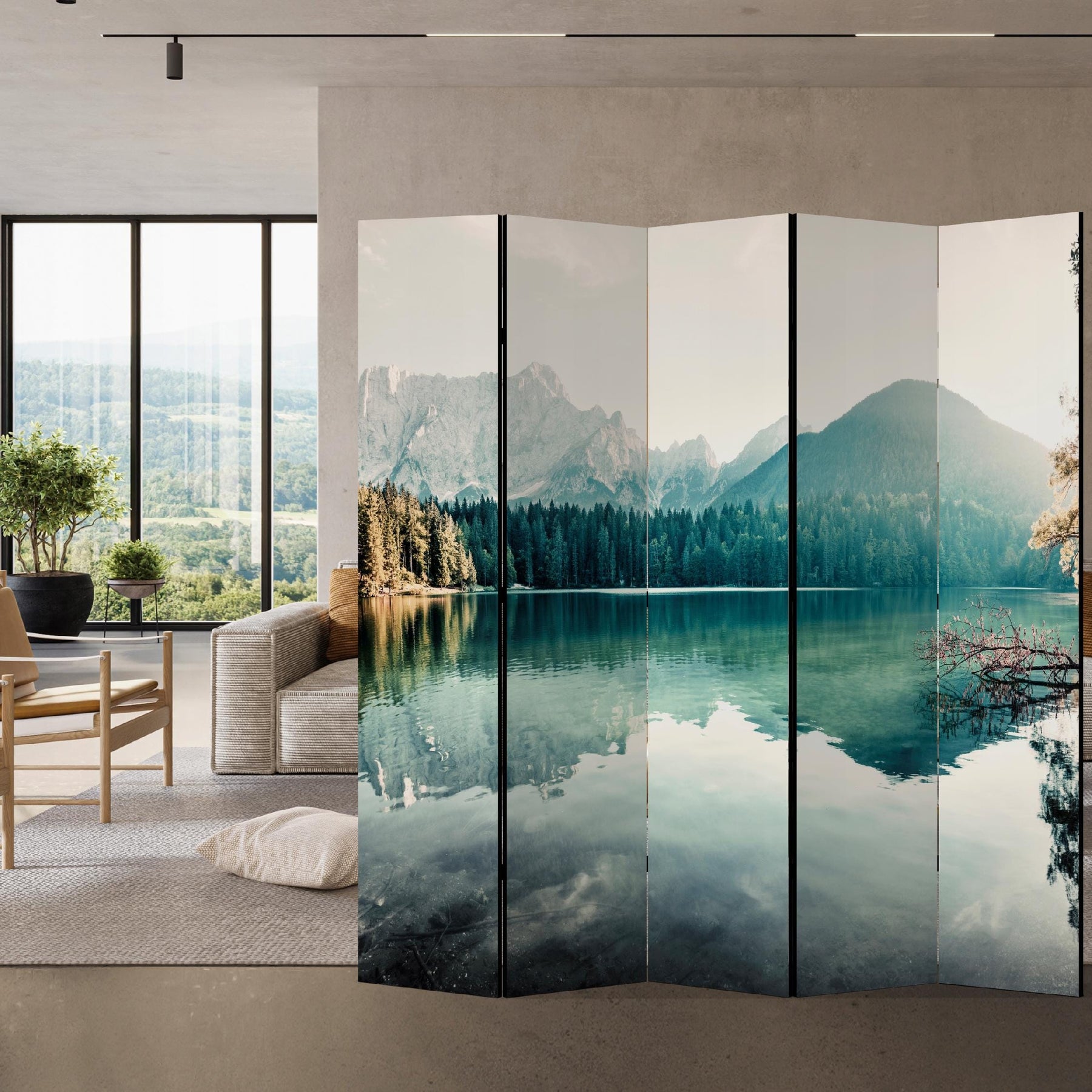 Aizslietnis, vienpusējs istabas sadalītājs, 225x172, Kalnu ainava (zilganie un meža zaļie toņi)