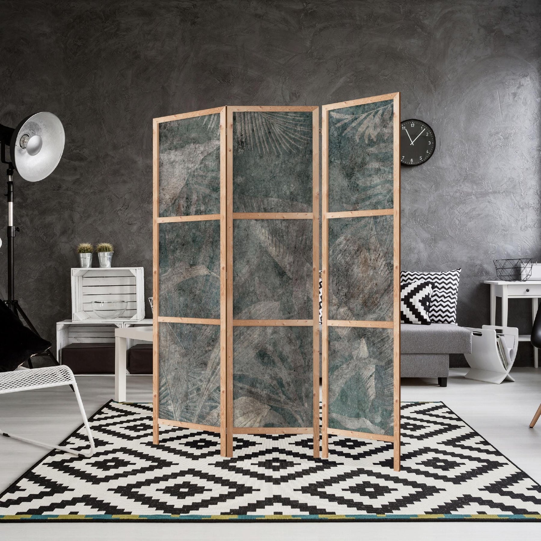 Dekoratīvs vienpusējs japāņu aizslietnis 135x172, Palmu lapas uz tumša zilganzaļa fona