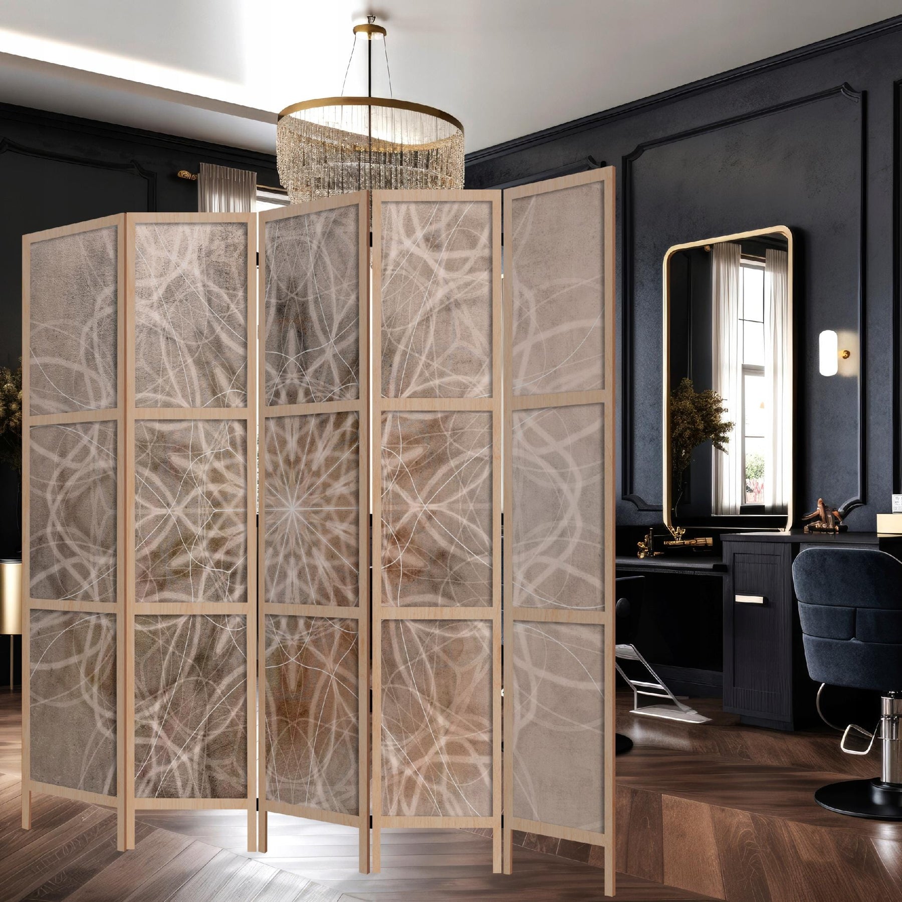 Izmēri: 135 x 172 cm (3 daļu starpsienas) vai 225 x 172 cm (5 daļu starpsienas).