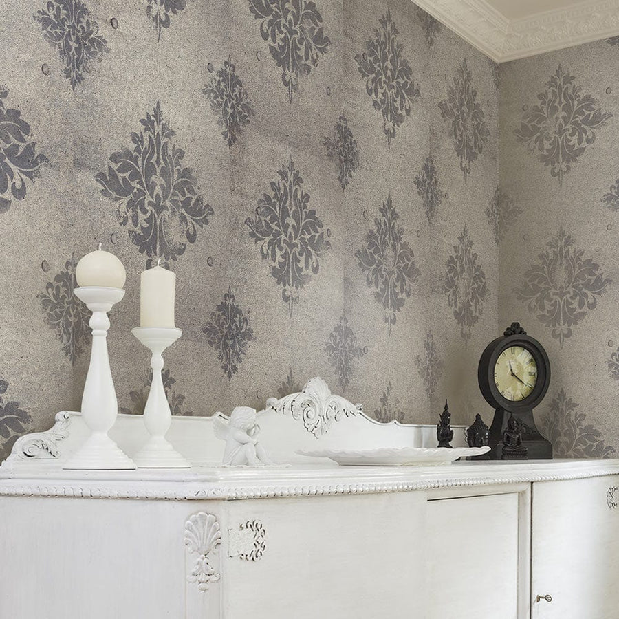 Baroka stila tapešu ornamenti ar mirdzuma efektu - pelēkā krāsā, 1320525