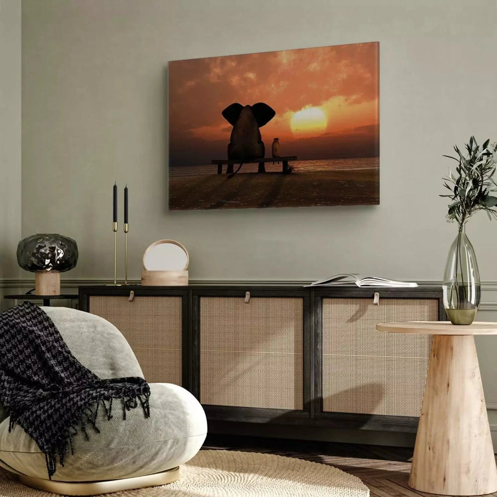 Kanva - Vakaras atpūta, 90502 - zilonis skatās uz saulrietu G-ART