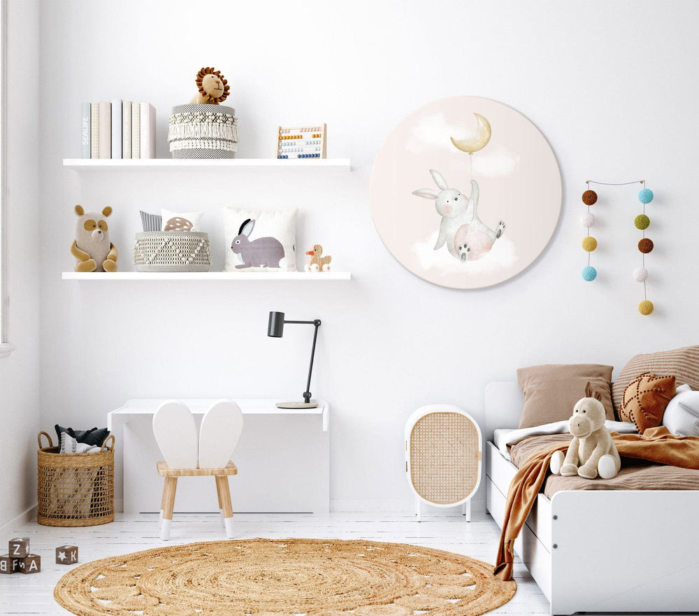 Apaļa kanva bērnistabai (Deluxe) - Zaķis uz mākoņa, 148652