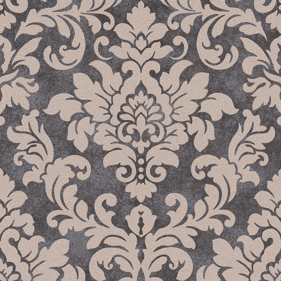 Ziedu ornamenta tapetes ar metālisku efektu - melna, sudraba, bēša AS Creation