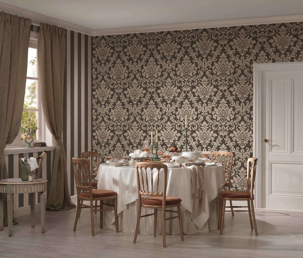 Strukturētas svītrainas tapetes - melna, pelēka, bēša AS Creation