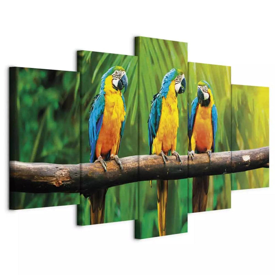Krāsaina kanva ar papagaiļiem  - Papagaiļu trio, (x 5), zaļā krāsā G-ART